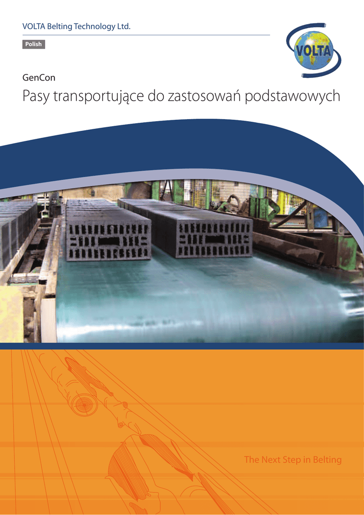 VOLTA Belting Technology Ltd. Polish GenCon Pasy transportujące do zastosowań podstawowych The Next Step in Belting VOLTA Belting Technology Ltd. Pasy płaskie do ogólnych zastosowań w transportowaniu Przemysł pasów transportujących coraz częściej stosuje elastomery termoplastyczne do zastosowania ogólnego, ponieważ wzrasta świadomość użytkowników co do korzyści, jakie daje ten uniwersalny materiał. Ponad 30- letnie doświadczenie Volta Belting na rynku pozwoliło rozwinąć technologię wysokiej jakości dostosowaną do potrzeb różnorodnego przemysłu w zakresie transportowania.Nasz szeroki asortyment pasów i pokryć spełnia wysokie wymagania specjalistycznych zastosowań. Jesteśmy przekonani, że nasz szeroki asortyment pasów transportujących do ogólnego zastosowania spełnia wysokie standardy, jakich oczekują klienci do utrzymania płynnie poruszających się systemów transportujących. Volta Belting posiada także produkty do zastosowań specjalistycznych: standardowe pasy płaskie, pasy napędowe oraz miękkie pasy z wysoką przyczepnością do twardych powierzchni, które odporne są na cięcie, przekłucia i ścieranie. Nasze pasy są łatwo zgrzewalne na przenośniku, zmniejszając tym samym czas przestoju produkcji. Stosowanie narzędzi Volta ułatwia zgrzewanie z pasami: ścian bocznych, płaskich zacisków pasa, profili po stronie transportującej i prowadnic klinowych po stronie napędu bocznego. Proszę pytać o nasz Katalog Narzędzi lokalnego dystrybutora Volty. Pasy jednolite Nasze pasy transportujące z termoplastycznych elastomerów, są odporne na wodę, oleje, chemikalia, ścieranie i nacięcia. Znakomita jakość gwarantuje, że powierzchnia transportująca jest trudna do uszkodzenia. Powód: Jednolita baza pasa bez tkaniny wyklucza rozwarstwianie się. Nasze wzmocnione pasy posiadają pojedynczą cienką warstwę tkaniny z termoplastycznych elastomerów. Pasy Volta GenCon są dostępne w szerokim zakresie twardości, kolorów i grubości pasa. Wszystkie pasy GenCon są łatwo wytwarzane i robione bezkońcowo przy użyciu naszych uniwersalnych narzędzi. Wyroby wysokiej jakości Wystarczy użyć naszych wysokiej jakości pasów i narzędzi aby w łatwy sposób wytwarzać wyroby wysokiej jakości. Możemy zapewnić, że nasze pasy i wyroby na długo zachowają trwałość. Powód: Bazę wyrobu stanowi cienka jednolita warstwa TPE co sprawia, że pas wytrzymuje większe obciążenia wykluczając jednocześnie możliwość rozwarstwienia. Przy użyciu takich materiałów jak: ścinki płaskich pasów Volty, zaciski typu T, ściany boczne, pasy klinowe można tworzyć unikalne systemy transportujące na zamówienie klienta. Znakomite zaciski Pasy transportujące Volta Belting posiadają szeroki zakres twardości (od 65A do 55D) oraz przyczepności (współczynnik tarcia). Taki zakres twardości i przyczepności ułatwia dobranie różnorodnych wyrobów do oczekiwań klienta. 2 Pasy płaskie do ogólnych zastosowań w transportowaniu Odporne na wodę i oleje Zastosowanie termoplastycznych elastomerów eliminuje potrzebę użycia wzmocnienia używanego powszechnie w innych pasach przenośnikowych. To wyklucza możliwość wchłaniania przez tkaninę płynów powodujących rozwarstwienie i przedwczesne uszkodzenie pasa. Odporne na substancje chemiczne Żaden pas nie jest odporny na działanie przemysłowych substancji chemicznych jednakże materiały użyte przez Volta Belting przy produkcji pasów zapewniają dobrą odporność na większość przemysłowych substancji chemicznych. Odporne na cięcia Te same materiały, które zapewniają odporność na hydrolizę, oleje i substancje chemiczne wykazują także wysoką odporność na cięcia i przekłucia.Na przykład pomimo braku wzmocnienia spodu pasa przy wystąpieniu cięcia na powierzchni nie następuje rozwarstwienie pasa.Jest to jedna z korzyści używania jednolitych pasów GenCon. Dodatkową korzyścią jest to, że przy przecięciu lub przekłuciu pasa można uszkodzony odcinek naprawić w przeciągu paru minut zamiast wymiany całego pasa.Zalecamy oczywiście użycie naszych narzędzi aby zadanie to wykonać szybko i efektywnie. Odporne na ścieranie Do produkcji pasów przenośnikowych używamy materiałów posiadających wysoką odporność na ścieranie. Te produkty zapewniają lata pracy pasa nawet w ekstremalnych warunkach. 3 VOLTA Belting Technology Ltd. Pasy płaskie do ogólnych zastosowań w transportowaniu Łatwa instalacja & minimalny czas przestoju Jednolity materiał pasa pozwala na jego instalację w ciągu paru minut co redukuje czas postoju produkcji do minimum. Instalacja jest tak łatwa, że wystarczy jedynie przyłączyć standardowe zasilanie bez potrzeby stosowania wody czy powietrza pod wysokim ciśnieniem. Do większości standardowych pasów wystarczą narzędzia łatwo obsługiwane przez jednego technika. Pas łatwy do naprawy Z naszymi narzędziami, doświadczonym personelem możemy zaślepić dziury i załatać rozdarcia w naszych pasach transportujących. Pas zostaje naprawiony poprzez oczyszczenie rozdarcia w pasie i zgrzanie elektrodą uszkodzonego kawałka z łatką identyczną jak oryginalny pas. Aby zreperować szkodę przy większych uszkodzonych obszarach kawałek może być także łatwo połączony z pasem. Naprawy są szybkie i łatwe przywracające pas do aktywnego działania i przedłużające jego trwałość. Duży zakres szerokości pasa Naturalne właściwości pasów transportujących Volty ułatwiają ich cięcie w paski. Co więcej, można łatwo i dokładnie zgrzewać wzdłuż ich długości aż do wymaganej szerokości. Narzędzia Volty sprawiają, że zadanie stworzenia różnych szerokości pasów jest łatwe i sprawne. Narzędzia Stworzyliśmy pełen zakres narzędzi do zgrzewania i wytwarzania płaskich pasów TPE.Narzędzia te są łatwe w obsłudze i wymagają jedynie zasilania (110 V AC/220 V AC). Co najistotniejsze, ich konstrukc