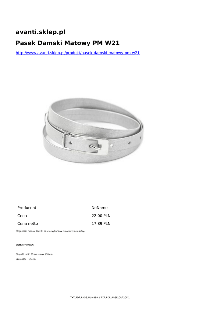 avanti.sklep.pl Pasek Damski Matowy PM W21
