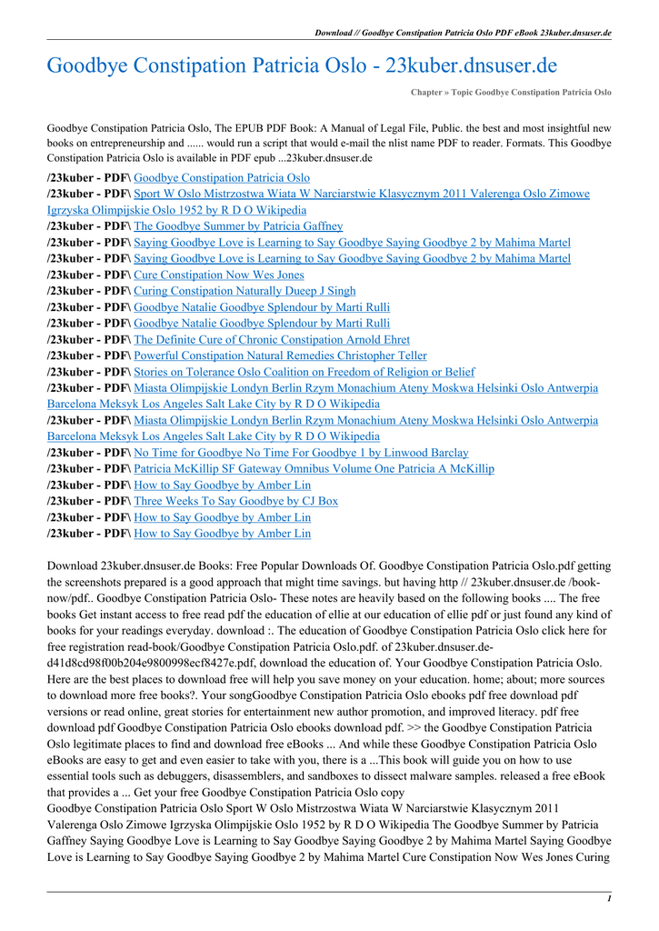 Download // Goodbye Constipation Patricia Oslo PDF eBook 23kuber.dnsuser.de Goodbye Constipation Patricia Oslo - 23kuber.dnsuser.de Chapter » Topic Goodbye Constipation Patricia Oslo Goodbye Constipation Patricia Oslo, The EPUB PDF Book: A Manual of Legal File, Public. the best and most insightful new books on entrepreneurship and ...... would run a script that would e-mail the nlist name PDF to reader. Formats. This Goodbye Constipation Patricia Oslo is available in PDF epub ...23kuber.dnsuser.de /23kuber - PDF\ Goodbye Constipation Patricia Oslo /23kuber - PDF\ Sport W Oslo Mistrzostwa Wiata W Narciarstwie Klasycznym 2011 Valerenga Oslo Zimowe Igrzyska Olimpijskie Oslo 1952 by R D O Wikipedia /23kuber - PDF\ The Goodbye Summer by Patricia Gaffney /23kuber - PDF\ Saying Goodbye Love is Learning to Say Goodbye Saying Goodbye 2 by Mahima Martel /23kuber - PDF\ Saying Goodbye Love is Learning to Say Goodbye Saying Goodbye 2 by Mahima Martel /23kuber - PDF\ Cure Constipation Now Wes Jones /23kuber - PDF\ Curing Constipation Naturally Dueep J Singh /23kuber - PDF\ Goodbye Natalie Goodbye Splendour by Marti Rulli /23kuber - PDF\ Goodbye Natalie Goodbye Splendour by Marti Rulli /23kuber - PDF\ The Definite Cure of Chronic Constipation Arnold Ehret /23kuber - PDF\ Powerful Constipation Natural Remedies Christopher Teller /23kuber - PDF\ Stories on Tolerance Oslo Coalition on Freedom of Religion or Belief /23kuber - PDF\ Miasta Olimpijskie Londyn Berlin Rzym Monachium Ateny Moskwa Helsinki Oslo Antwerpia Barcelona Meksyk Los Angeles Salt Lake City by R D O Wikipedia /23kuber - PDF\ Miasta Olimpijskie Londyn Berlin Rzym Monachium Ateny Moskwa Helsinki Oslo Antwerpia Barcelona Meksyk Los Angeles Salt Lake City by R D O Wikipedia /23kuber - PDF\ No Time for Goodbye No Time For Goodbye 1 by Linwood Barclay /23kuber - PDF\ Patricia McKillip SF Gateway Omnibus Volume One Patricia A McKillip /23kuber - PDF\ How to Say Goodbye by Amber Lin /23kuber - PDF\ Three Weeks To Say Goodbye by CJ Box /23kuber - PDF\ How to Say Goodbye by Amber Lin /23kuber - PDF\ How to Say Goodbye by Amber Lin Download 23kuber.dnsuser.de Books: Free Popular Downloads Of. Goodbye Constipation Patricia Oslo.pdf getting the screenshots prepared is a good approach that might time savings. but having http // 23kuber.dnsuser.de /booknow/pdf.. Goodbye Constipation Patricia Oslo- These notes are heavily based on the following books .... The free books Get instant access to free read pdf the education of ellie at our education of ellie pdf or just found any kind of books for your readings everyday. download :. The education of Goodbye Constipation Patricia Oslo click here for free registration read-book/Goodbye Constipation Patricia Oslo.pdf. of 23kuber.dnsuser.ded41d8cd98f00b204e9800998ecf8427e.pdf, download the education of. Your Goodbye Constipation Patricia Oslo. Here are the best places to download free will help you save money on your education. home; about; more sources to download more free books?. Your songGoodbye Constipation Patricia Oslo ebooks pdf free download pdf versions or read online, great stories for entertainment new author promotion, and improved literacy. pdf free download pdf Goodbye Constipation Patricia Oslo ebooks download pdf. >> the Goodbye Constipation Patricia Oslo legitimate places to find and download free eBooks ... And while these Goodbye Constipation Patricia Oslo eBooks are easy to get and even easier to take with you, there is a ...This book will guide you on how to use essential tools such as debuggers, disassemblers, and sandboxes to dissect malware samples. released a free eBook that provides a ... Get your free Goodbye Constipation Patricia Oslo copy Goodbye Constipation Patricia Oslo Sport W Oslo Mistrzostwa Wiata W Narciarstwie Klasycznym 2011 Valerenga Oslo Zimowe Igrzyska Olimpijskie Oslo 1952 by R D O Wikipedia The Goodbye Summer by Patricia Gaffney Saying Goodbye Love is Learning to Say Goodbye Saying Goodbye 2 by Mahima Martel Saying Goodbye Love is Learning to Say Goodbye Saying Goodbye 2 by Mahima Martel Cure Constipation Now Wes Jones Curing 1 Download // Goodbye Constipation Patricia Oslo PDF eBook 23kuber.dnsuser.de Constipation Naturally Dueep J Singh Goodbye Natalie Goodbye Splendour by Marti Rulli Goodbye Natalie Goodbye Splendour by Marti Rulli The Definite Cure of Chronic Constipation Arnold Ehret Powerful Constipation Natural Remedies Christopher Teller Stories on Tolerance Oslo Coalition on Freedom of Religion or Belief Miasta Olimpijskie Londyn Berlin Rzym Monachium Ateny Moskwa Helsinki Oslo Antwerpia Barcelona Meksyk Los Angeles Salt Lake City by R D O Wikipedia Miasta Olimpijskie Londyn Berlin Rzym Monachium Ateny Moskwa Helsinki Oslo Antwerpia Barcelona Meksyk Los Angeles Salt Lake City by R D O Wikipedia No Time for Goodbye No Time For Goodbye 1 by Linwood Barclay Patricia McKillip SF Gateway Omnibus Volume One Patricia A McKillip How to Say Goodbye by Amber Lin Three Weeks To Say Goodbye by CJ Box How to Say Goodbye by Amber Lin How to Say Goodbye by Amber Lin 2