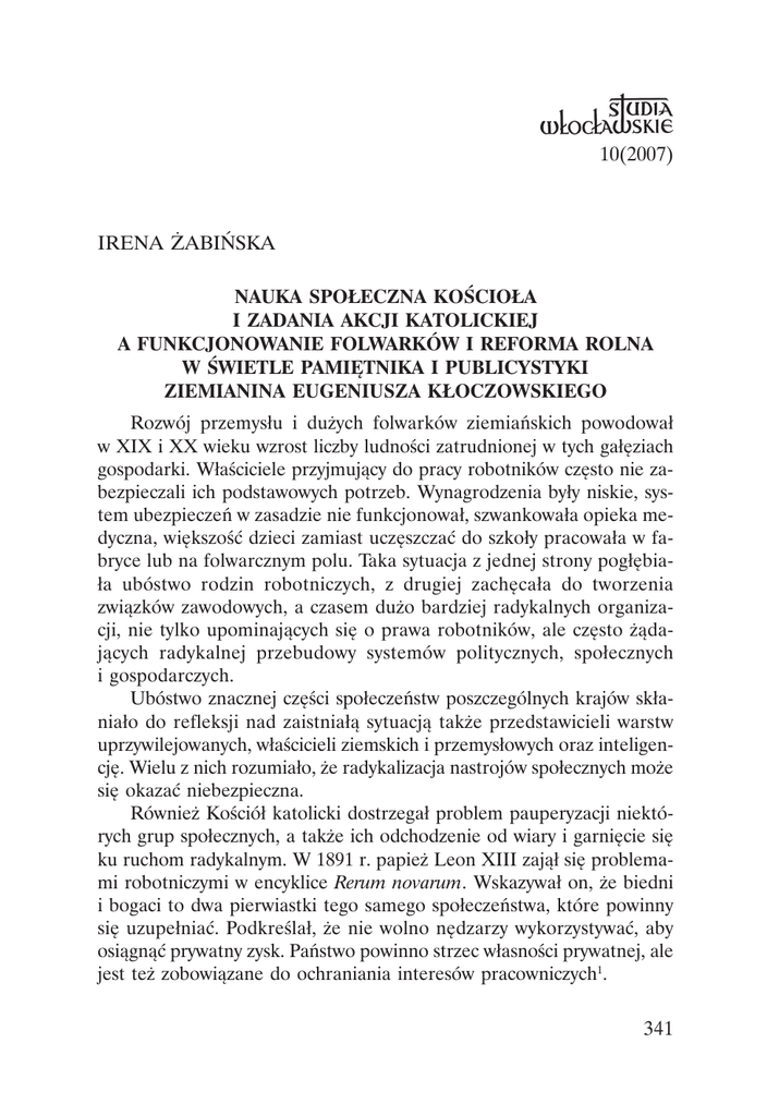 341 IRENA ŻABIŃSKA NAUKA SPOŁECZNA KOŚCIOŁA I ZADANIA