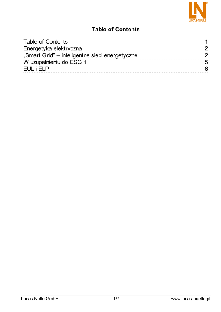Table of Contents Table of Contents Energetyka elektryczna „Smart Grid” – inteligentne sieci energetyczne W uzupełnieniu do ESG 1 EUL i ELP Lucas Nülle GmbH 1/7 1 2 2 5 6 www.lucas-nuelle.pl Energetyka elektryczna Training systems on the generation, distribution and management of electrical energy: Power engineering training system, distribution training system Energy generation training system, renewable energy generation training system Transformer training system, high-voltage transmission lines training system, protective systems training system Energy management training system, smart grid training systems The Lucas-Nülle training systems have been designed in anticipation of the newest developments: Smart measuring instruments provided with various communication interfaces (e.g. LAN, RS485, USB) and control elements SCADA Power Engineering Lab software for the intelligent control and evaluation of "smart grids" using Soft PLC SCADA software designed for educational purposes Permits investigation of dynamically alternating loads and power generation inside the laboratory Intelligent energy management Modular integration of renewable energies into a smart grid using protective engineering Wind power plant with doubly-fed asynchronous generator (DFIG) and synchronisation to the grid Interactive multimedia training course Training systems on the generation, distribution and management of electrical energy: Power engineering trainer, distribution trainer Energy generation trainer, renewable energy generation trainer Transformer trainer, high-voltage transmission lines trainer, protective systems trainer Energy management trainer, smart grid trainers The Lucas-Nülle training systems have been designed in anticipation of the newest developments: Smart measuring instruments which avail of various communication interfaces (e.g. LAN, RS485, USB) and control elements SCADA Power Engineering Lab software for the intelligent control and evaluation of the "Smart Grid" with soft plc Didactically designed SCADA software Permits investigation of dynamically alternating loads and power generation inside the laboratory Intelligent energy management Modular integration of renewable energies into the smart grid using protective engineering Wind power plant with doubly-fed asynchronous generator (DFIG) with mains sychronisation Interactive multimedia training course „Smart Grid” – inteligentne sieci energetyczne Lucas Nülle GmbH 2/7 www.lucas-nuelle.pl Lucas Nülle GmbH 3/7 www.lucas-nuelle.pl „Smart Grid” – inteligentne sieci energetyczne W przyszłości nowe technologie lepiej wyposażą sieci energetyczne na potrzeby przyszłych wyzwań. Bardziej elastyczne zarządzanie siecią sprawi, że rosnący udział odnawialnych źródeł energii stanie się kompatybilny z konwencjonalną infrastrukturą, kojarzoną z elektrowniami. Różnorodność i liczba tych zdecentralizowanych źródeł energii wymaga rewizji podejścia do zarządzania sieciami energetycznymi – przejścia na tzw. "sieci inteligentne": usprawnienie koordynacji wymagań w stosunku do energii i produkcji energii Wykorzystanie nowoczesnych technologii IT, takich jak Internet, czujniki, systemy sterowania i urządzenia do transmisji bezprzewodowej. "Inteligentne pomiary" – cyfrowe mierniki prądu mierzą pobór prądu tam, gdzie konsumenci są podłączeni do sieci. Przesunięcie poboru gospodarstw domowych na inne okresy, niż szczyty obciążenia. Uruchomienie elastycznych aplikacji, takich jak uruchamianie zmywarek do naczyń poza godzinami szczytu i dostawca energii jako dostawca usług. Systemy szkoleniowe Lucas-Nülle zostały zaprojektowane z wyprzedającym uwzględnieniem tych tendencji: Inteligentne instrumenty pomiarowe z różnymi interfejsami komunikacyjnymi (np. LAN, RS485, USB) i elementami sterowania. Oprogramowanie SCADA Power Engineering Lab do inteligentnego sterowania i analizy inteligentnych sieci za pomocą komputera PC. Oprogramowanie SCADA zaprojektowane do celów dydaktycznych Umożliwia badanie dynamicznie zmieniających się obciążeń i generowanie mocy w obrębie laboratorium. Inteligentne zarządzanie energią. Modułowa integracja energii odnawialnej z inteligentną siecią za pomocą inżynierii ochronnej. Elektrownia wiatrowa z generatorem asynchronicznym podwójnie zasilanym (DFIG) z synchronizacją z siecią. Interaktywny multimedialny kurs szkoleniowy. Systemy szkoleniowe w zakresie produkcji, dystrybucji, ochrony energii elektrycznej oraz zarządzania nią: Zarządzanie energią, system szkoleniowy w zakresie inteligentnych sieci energetycznych Produkcja energii, produkcja energii odnawialnej Linie przesyłowe wysokiego napięcia, systemy ochronne Training system on the generation, transmission, distribution, protection and management of electrical energy: Energy management, smart grid training system Energy generation, regenerative energy generation High-voltage transmission lines, protective systems Lucas Nülle GmbH 4/7 www.lucas-nuelle.pl W uzupełnieniu do ESG 1 W uzupełnieniu do ESG 1 Następujące wyposażenie z zakresu wytwarzania energii może być wykorzystane opcjonalnie indywidualnie lub w kombinacji i uzupełniająco do wyposażenia "ESG 1 Sieci inteligentne". W takim układzie jest możliwość wykonania rozbudowanych doświadczeń w celu zbadania inteligentnych sieci. Lucas Nülle GmbH 5/7 www.lucas-nuelle.pl EUL i ELP EUL i ELP EUL Linie przesyłowe wysokiego napięcia Dla własnego bezpieczeństwa, linie przesyłowe 380 kV są badane i podłączane na poziomie niskiego napięcia bez pozbawiania ich przy tym charakterystyki rzeczywistej linii wysokiego napięcia. Realistyczna symulacja linii przesyłowej 380 kV przełącza się automatycznie między długością linii 300 km i 150 km po umieszczeniu na miejscu maski. Łączne użycie wielu modeli symulacyjnych połączonych równolegle lub szeregowo umożliwia budowę złożonych sieci. Treści szkoleniowe: EUL E