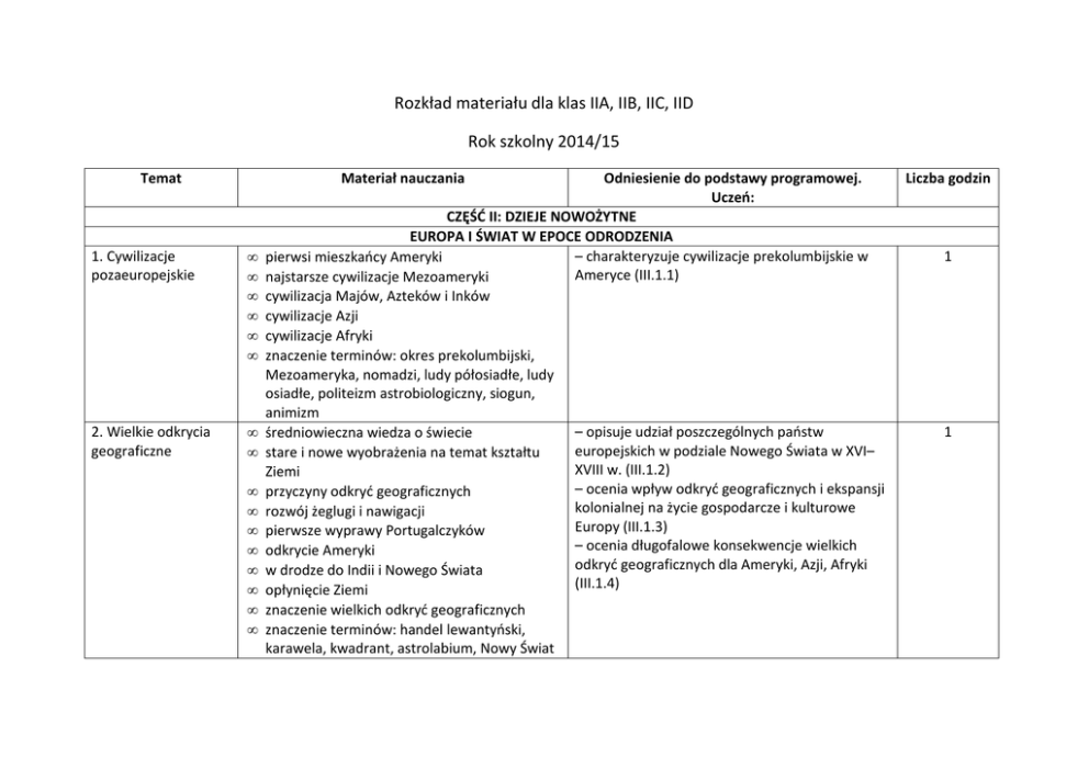 Rozkład materiału dla klas IIA, IIB, IIC, IID Rok szkolny 2014