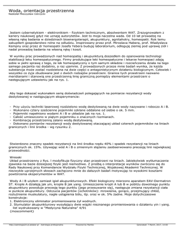 Wody A i B użyłem zamiast igieł akupunkturowych. Efekt biologiczny mierzono aparatem EAV-Dermatron