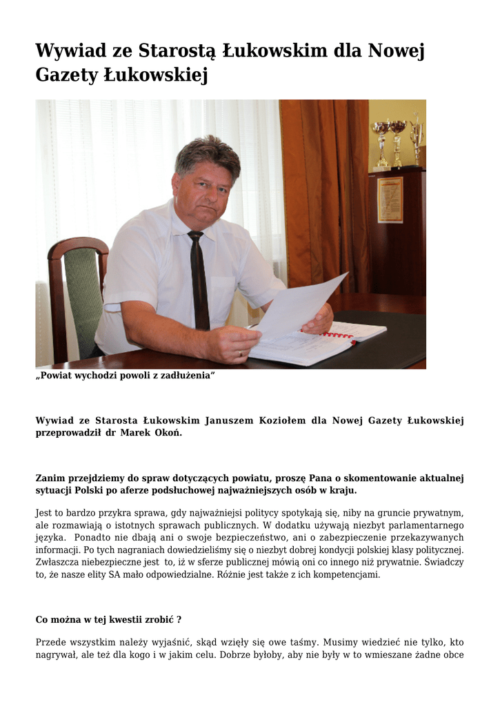 Wywiad ze Starostą Łukowskim dla Nowej Gazety Łukowskiej