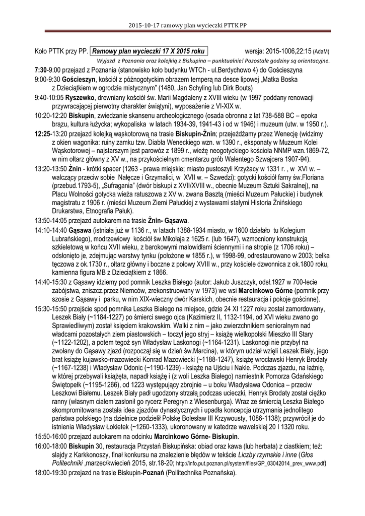 2015-10-17 ramowy plan wycieczki PTTK PP