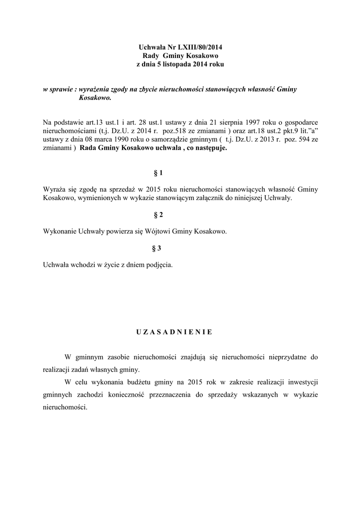 uchwala Nr LXIII(80(2014 zbycie nieruchomosci