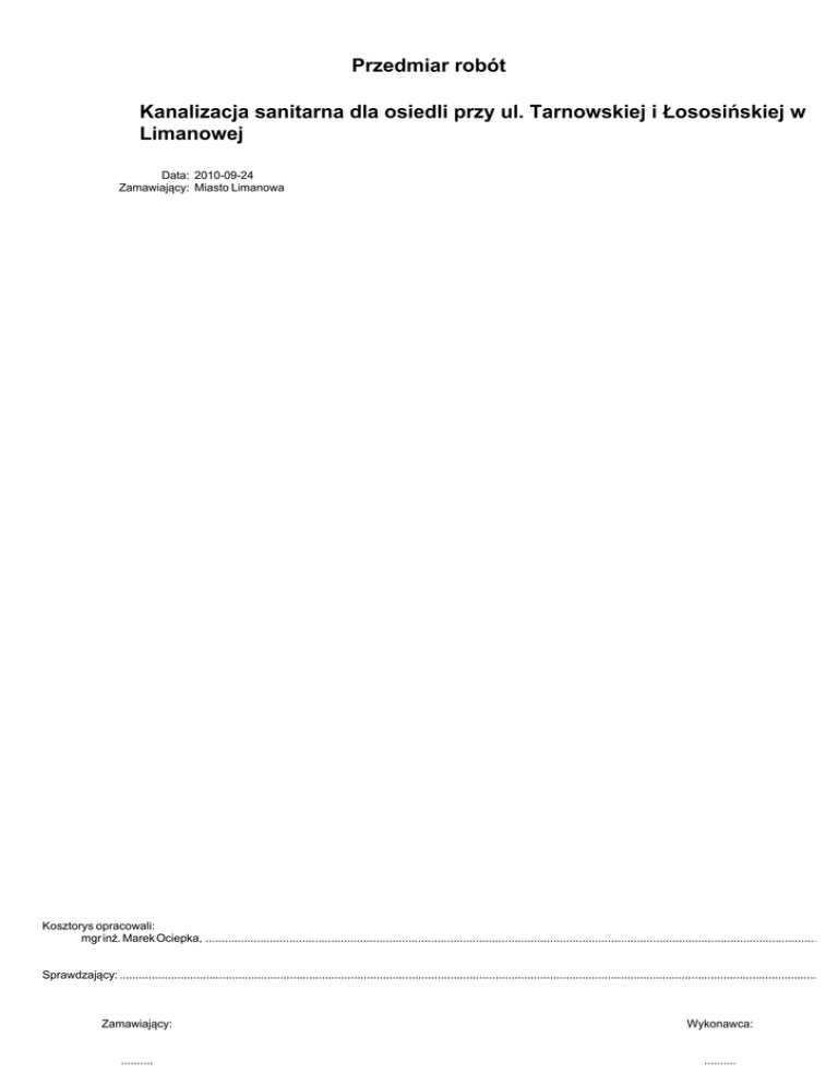Przedmiar robót - Miasto Limanowa
