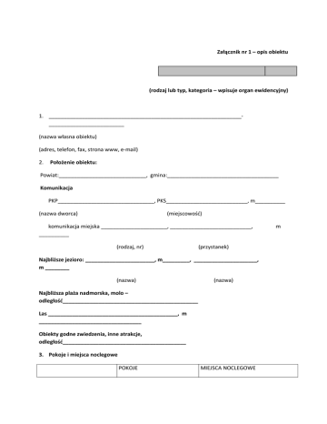 Załącznik nr 1 – opis obiektu (rodzaj lub typ, kategoria – wpisuje