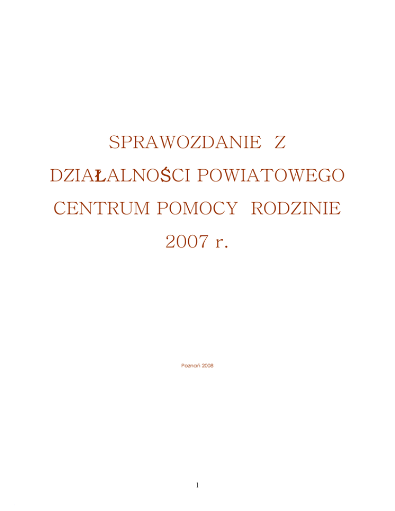 SPRAWOZDANIE Z DZIAŁALNOŚCI POWIATOWEGO CENTRUM