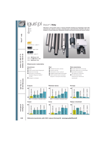 DryLin® | Wały DryLin® - wały Wały DryLin® tworzą zestaw części z 7 różnych materiałów. Dostępne są zmniejszające ciężar wałki aluminiowe jak i odporne na korozję i chemikalia wały ze stali szlachetnej. Wszystkie wały są też dostępne w wersji podpieranej. Indywidualna obróbka wg Państwa życzenia jest zawsze możliwa. Wszechstronny – iglidur ® J Elkstremalny – iglidur ® X iglidur ® J iglidur® J200 iglidur ® X Strona 1.38 Strona 1.137 Strona 1.62 Właściwości materiałów Stal Aluminium standard korzystny cenowo niskie zużycie łożysk ślizgowych wysoka nośność wysoka odporność na chemikalia odporne na korozję stosowanie w środ. suchych optymalne rozwiązanie optymalne w kombinacji z dostępne również twardo chromowane dla wilgotnych środowisk łożyskami ślizgowymi iglidur® niskie wartości tarcia na łożyska V4A dla ekstremalnie J/J 200 ślizgowe z tworzywa sztucznego intensywnych chemicznie zastosowań stal szlach., utwardzana stal szlach., ciągniona stal szlach., utwardzana stal szlach., ciągniona Stal, chromowane Stal, utwardzana iglidur® J w kontakcie z materiałem wałów Obliczenia żywotności, pliki CAD i więcej informacji www.igus.pl/pl/DryLinR Stal, chromowane Stal, utwardzana Aluminium, twardo anod. stal szlach., ciągniona stal szlach., utwardzana Stal, chromowane Stal, utwardzana Wpływ chemikalii Aluminium, twardo anod. stal szlach., ciągniona stal szlach., utwardzana Stal, chromowane Aluminium, twardo anod. stal szlach., ciągniona stal szlach., utwardzana Stal, chromowane Stal, utwardzana Korozja Cena Stal, utwardzana Aluminium, twardo anod. [email protected] Aluminium, twardo anod. stal szlach., ciągniona stal szlach., utwardzana Stal, chromowane Wartości tarcia Stal, utwardzana Zużycie Ciężar www.igus.pl wysoka odporność na korozję dostępne na bieżąco iglidur® J w kontakcie z materiałem wałów 3.98 Stal szlachetna lekkie Aluminium, twardo anod. telefaks: 22 / 863 61 69 02-445 Warszawa igus® Sp. z o. o. telefon: 22 / 863 57 70 Specjalista – iglidur® J200 DryLin® Wały DryLin® | Program dostawy SWUM AWMP AWMU AWMR Materiał EN AW 6061/6060 SWM SWUMH SWUMN SWMH SWUMHN EWM 1.1213 1.1213 HV EWUM EEWUM EWUMN EEWM EEWUMN 1.4125 1.4034 stal nierdz., ciągniona EWMR EWMS 1.4301 1.4571 Ø6 l s s s2 s Ø8 l s s s2 s Ø 10 l l s s s2 s s Ø 12 l l s s s s s s s s s n Ø 16 l l s s s s s s s s s n Ø 20 l l l s s s s s s s s s s Ø 25 l l l s s s s s s s s s n Ø 30 l1 l s s s s s s s s s n Ø 40 l1 l s s s s s s s Ø 50 l1 s s s s s s s s Tolerancja h8 h6 h6 h7 h7 h6 h6 h6 h6 h9 h9 6000 3000 Max. dostępna dł. Ø8–10 –0,1 h9 3000 3000 Max. dostępna dł. Ø12–50 3000 4000 Okrągłość 6000 6000 6000 3000 6000 6000 3000 6000 6000 utwardz./szlifowany twardo chrom, płytki utwardz./szlifowany utwardz./szlifowany 3000 ciągniona < 0,6 0,15–0,3 0,15–0,3 0,15–0,3 0,15–0,3 450–550 HV 60+4 HRC 60+4 HRC 52+8 HRC 52+8 HRC soft DIN EN 12020 <1/2 Tolerancji <1/2 Tolerancji <1/2 Tolerancji <1/2 Tolerancji <1/2 Tolerancji chropowatość pow. Ra twardość pow. 3000 twardo anod. Powierzchnia 3000 s Termin dostawy l na bieżąco s 3-14 dni n na zapytanie 1 profil wydrążony 30x7,5; 40x10; 50x11 2 0,3–0,6 DryLin® - wały Oznakowanie stal nierdzewna, utwardzana telefaks: 22 / 863 61 69 Stal telefon: 22 / 863 57 70 Aluminium Materiał 1.4112 Nr art.: AWMU -12 -500 -T1 bez danych: Standard T2 Podziałka T1 na zamówienie Przykład zamówienia: Długość w mm owi aluminiowemu o średnicy 12 mm i długości Ø w mm 500 mm AWMU - 12 - 500 odpowiada podpieranemu wał- Oznaczenie z tabeli dostawy Specjalna obróbka Wszystkie wały mogą być na życzenie indywidualnie obrabiane. Prosimy o przesłanie nam Państwa szkicu. Przygotujemy w krótkim czasie ofertę Gwint wewnętrzny, osiowy Gwint zewnętrzny Czop walcowy Podtoczenie Specjalne kształy Gwint wewnętrzny, radialne Pytania można również stawiać w internecie: www.igus.pl/pl/shaftinquiry Obliczenia żywotności, pliki CAD i więcej informacji www.igus.pl/pl/DryLinR 3.99 TA | Wspornik końcowy wałka | ruchomy Szczególne właściwości Materiał: aluminium Akcesoria DryLin® Gwintowany otwór montażowy Dostępne na bieżąco H1 telefaks: 22 / 863 61 69 02-445 Warszawa B H3 telefon: 22 / 863 57 70 igus® Sp. z o. o. d R E A øS Wymiary [mm] Wspornik końcowy wałka TA Nr art. d [mm] A [mm] B [mm] H1 [mm] H3 [mm] S E [mm] R [mm] Ciężar [kg] M5 M6 M8 M10 M12 M12 M16 52 70 82 108 132 150 190 32 42 54 72 88 96 122 0,04 0,07 0,13 0,22 0,44 0,56 1,00 [email protected] www.igus.pl ± 0,015 3.106 TA-08 TA-12 TA-16 TA-20 TA-25 TA-30 TA-40 8 12 16 20 25 30 40 65 85 100 130 160 180 230 12 14 18 20 25 25 30 22 28 32 42 52 58 72 Obliczenia żywotności, pliki CAD i więcej informacji 11 14 16 21 26 29 36 www.igus.pl/pl/DryLinR