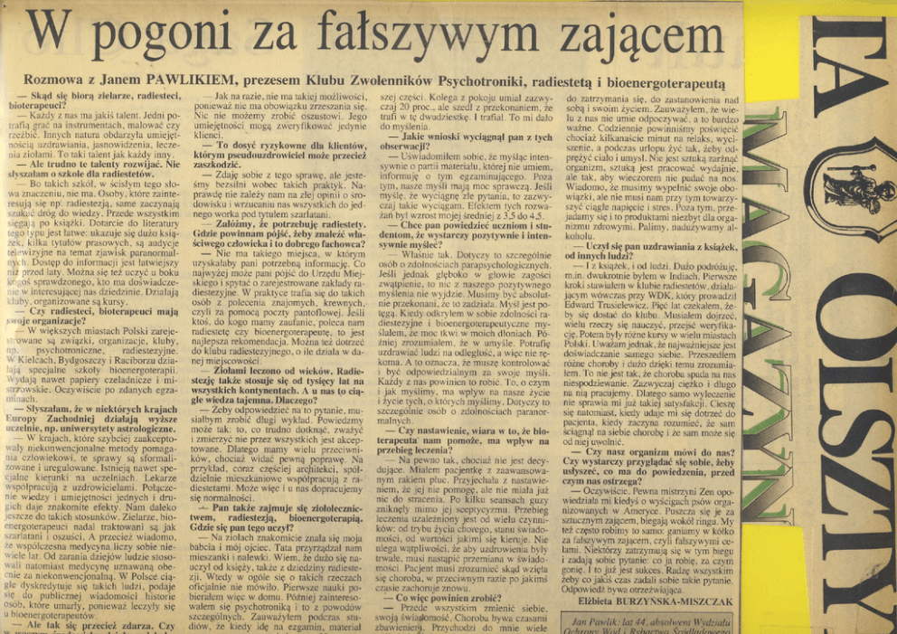 prezesem Klubu Zwo|enników Psychotroniki' radiestetą i bioenergoterapeutą