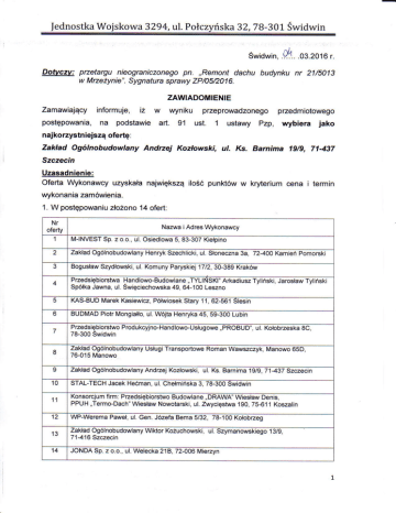 Zamawiaj4cy informuje, iz w wyniku pzeprowadzonego przedmiotowego