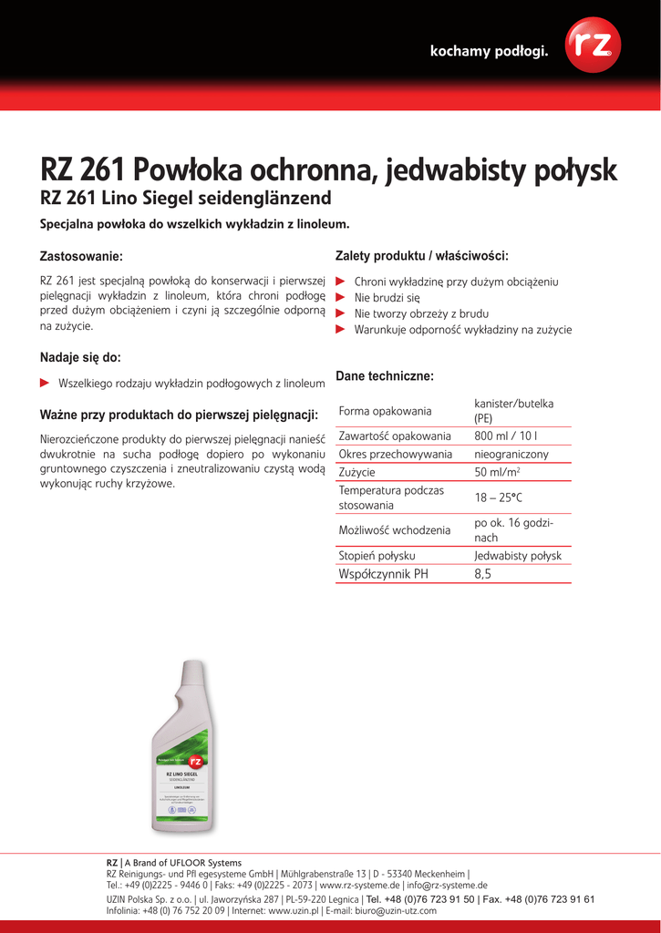 RZ 261 Powłoka ochronna, jedwabisty połysk