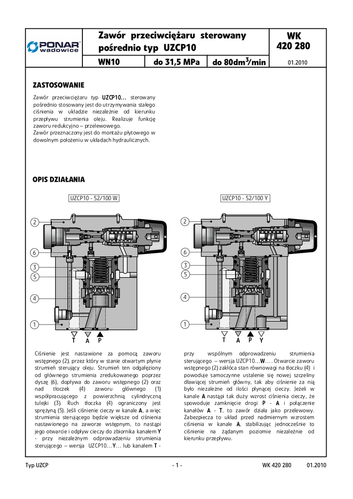 WK 420 280 Zawór przeciwciężaru sterowany pośrednio typ UZCP10