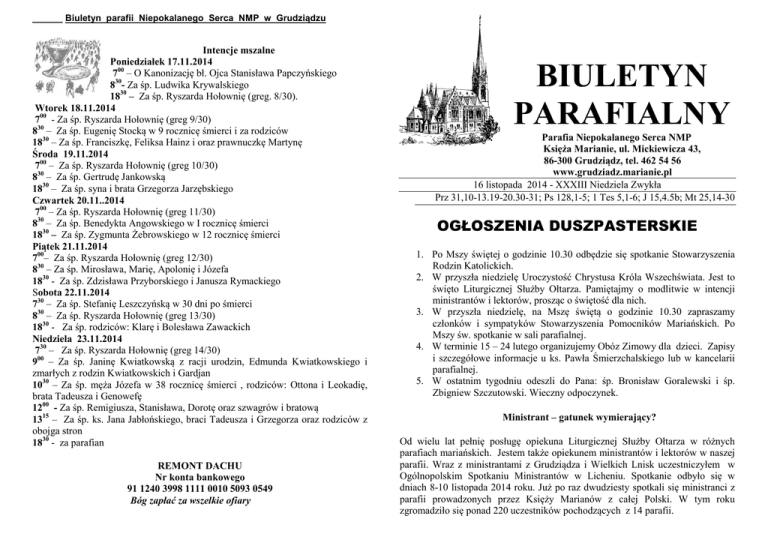 biuletyn 16.11 - Parafia Niepokalanego Serca Najświętszej Maryi