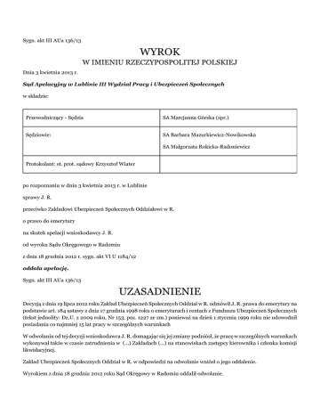 wyrok uzasadnienie - Portal Orzeczeń Sądu Apelacyjnego w Lublinie