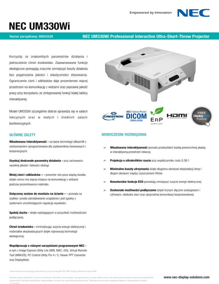 Karta Katalogowa NEC UM330Wi