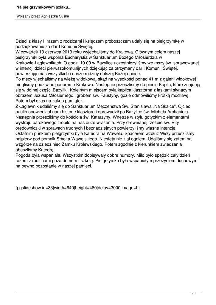 razem z rodzicami poza domem i szkołą. Pielgrzymka była wspaniałym przeżyciem duchowym i