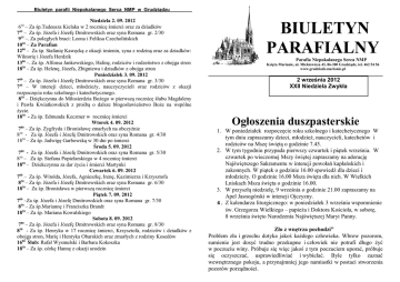 Biuletyn 2 wrzeĹ›nia - Parafia Niepokalanego Serca Najświętszej