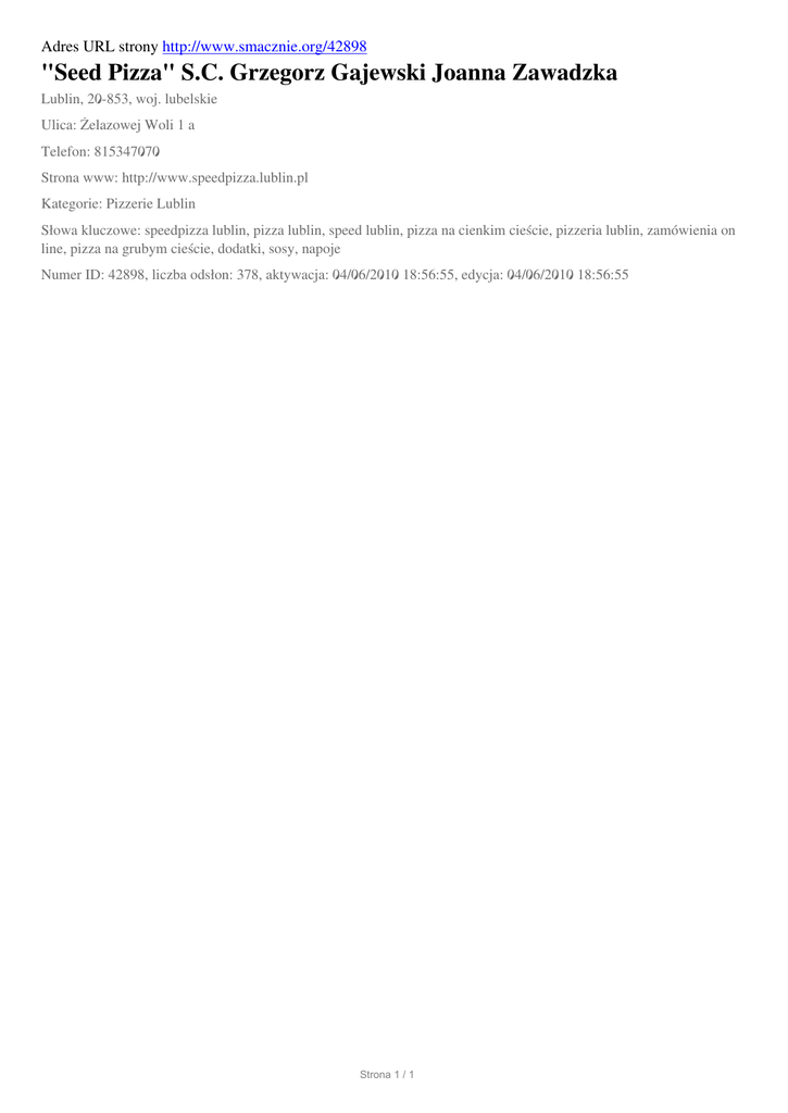 "Seed Pizza" SC Grzegorz Gajewski Joanna