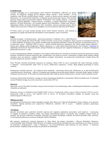 Lokalizacja Opis Szczyty Miejscowości Atrakcje