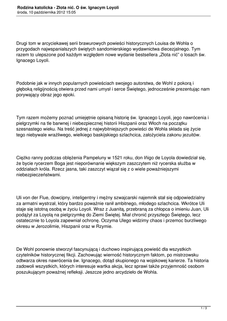 Rodzina katolicka - Złota nić. O św. Ignacym Loyoli