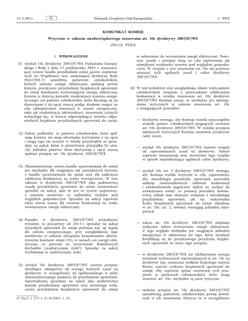 art. 10c dyrektywy 2003/87/WE. W wyniku przyjęcia