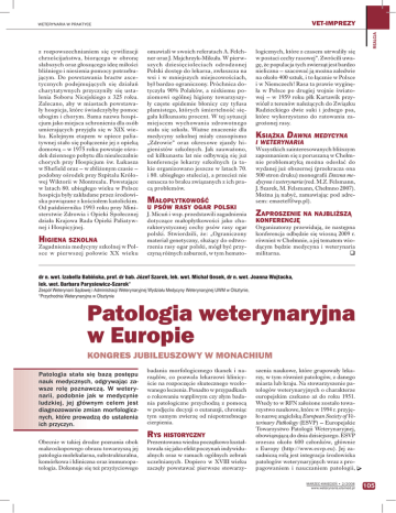 Patologia weterynaryjna w Europie Kongres jubileuszowy w