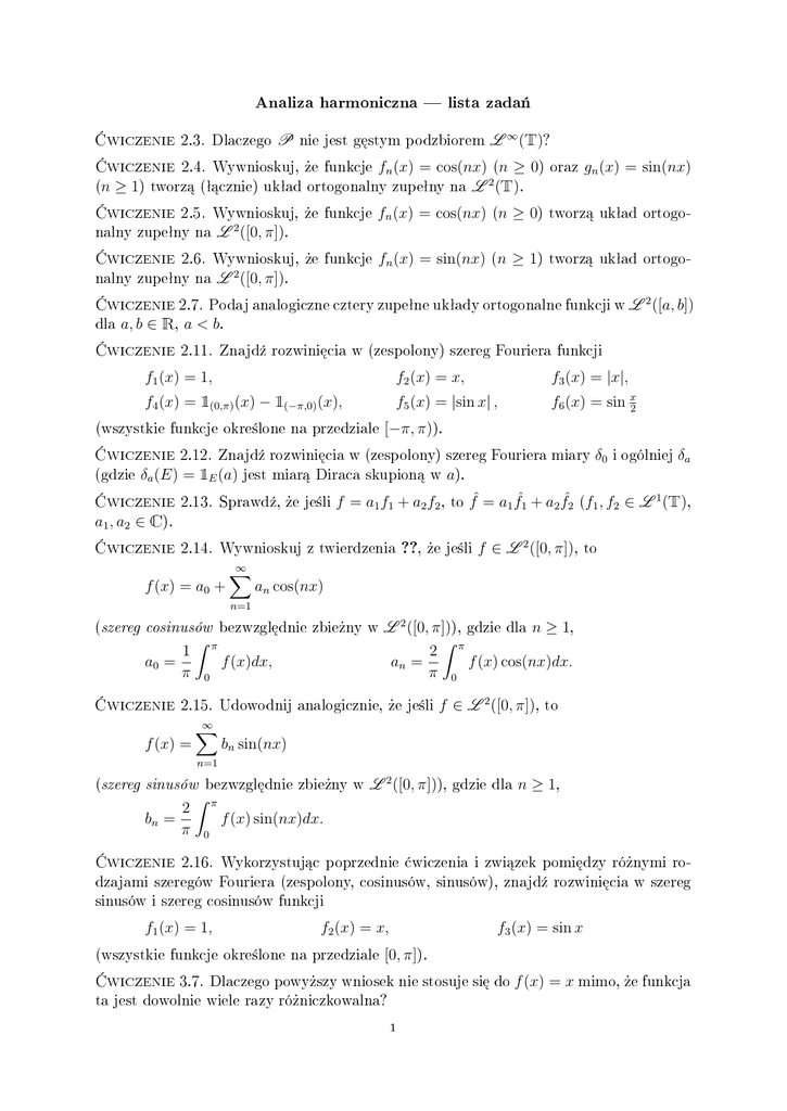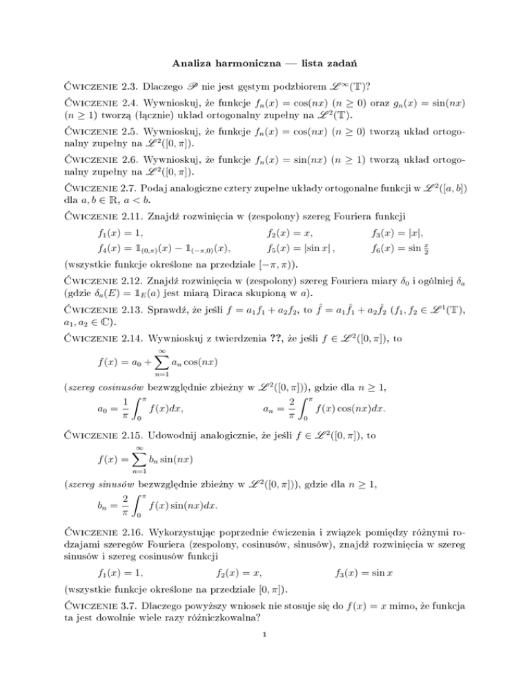 2.4. Wywnioskuj, »e funkcje fn (x) = cos(nx) (n ≥ 0) oraz gn (x) = sin(nx)
