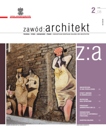 # 04 ISSN 1898-486X 2_08 TECHNIKA • RYNEK • ZARZĄDZANIE • PRAWO • OGÓLNOPOLSKI KWARTALNIK KRAJOWEJ IZBY ARCHITEKTÓW z:a ARCHITEKTURA TO NIE STERTA CEGIEŁ . . . 08 KRÓTKI PORADNIK WYWIERANIA WPŁYWU . . . 14 STREFY ZMIENNE W ARANŻACJACH . . . . . . . 24 PROGNOZOWANIE TRENDÓW BARWNYCH . . . 21 BEZPIECZNE HALE SPORTOWE ANTYGRAFFITI . . . . . . . . . 30 32 PROCEDURY CERAMIKA UCZY ADMINISTRACYJNE POKORY . . . . . . . . (2) . . . . . . 42 41 OGRANICZANIE ODPOWIEDZIALNOŚĆ ZAWODOWA DOSTĘPU DO .INFORMACJI . . . . . . . . . . 46 PUBLICZNEJ . . . . . . . . . . . 44 NORDKAPP Z SIODEŁKA MOTOCYKLA . . . . . . . . . . . 50 SARDYNIA MAJOWA 52 EGZEMPLARZ BEZPŁATNY DLA CZŁONKÓW IA WWW.ZAWOD-ARCHITEKT.PL Seria łączników i gniazd www.schneider-electric.pl redakcja Polska! Biało-czerwoni! Polska...!? Podobno zawsze musi być ten pierwszy raz. Choć analizując historię, trudno oprzeć się natrętnej myśli, że wcale nie musi, to jednak pozostańmy przy – naiwnym być może, przyznaję – przeświadczeniu. Gdy bierzecie do ręki ten numer Z:A, polscy piłkarze właśnie mają za sobą OGÓLNOPOLSKI KWARTALNIK KRAJOWEJ IZBY ARCHITEKTÓW „swój pierwszy raz” w mistrzostwach Europy. Gdy jednak piszę te słowa jeszcze kilka dni pozostaje do meczu z Niemcami. Dlatego nie wiem, jak poradzą sobie nie tylko w tym starciu, wydawca: Krajowa Izba Architektów ul. Foksal 2, 00-366 Warszawa tel. (022) 827 85 14 faks (022) 827 62 42 adres redakcji: Zawód:Architekt ul. Długosza 2-6, 51-162 Wrocław tel. (071) 782 87 80 faks (071) 782 87 81 ale i w pozostałych. Może więc teraz wszyscy jesteśmy w euforycznych nastrojach, delektując się kolejnymi ułańskimi szarżami zawodników, taktyczną i motywatorską biegłością Wielkiego Don Leo. Grzejąc się w cieple tak wyczekiwanego Sukcesu. A może Polacy – co w ich ostatnich turniejowych występach jest normą – zagrali nieźle, lecz przegrali jak zawsze. Jakikolwiek by był przebieg wydarzeń, na który jako nacja wpływ mamy już niewielki (choć oczywiście chcielibyśmy inaczej, by gorący doping z każdego zakątka kraju niósł nasze orły), redaktor naczelny: Sebastian Osowski [email protected] trzeba stanąć przed prawdą tyleż nagą, co oczywistą i zwyczajną: to tylko jeden turniej. Choć- sekretarz redakcji: Tomasz Wlezień [email protected] niem jednostkowym. Zapisanym w historii, ale na historię Polski mającym wpływ ograniczony by nawet przeszedł do kanonu naszych narodowych zrywów i osiągnięć, pozostanie wydarzei właściwie bardzo ulotny. redakcja: Magdalena Michalczyk Katarzyna Krzywińska-Szczygieł Urszula Szabłowska [email protected] Panem et circenses! – mawiali Rzymianie. Chyba dlatego lepiej już skupić się na naszym drugim „pierwszym razie”. Dzięki niemu możemy mieć nie tylko igrzyska, ale i chleb, bo też Euro 2012 to wyzwanie bez precedensu w dziejach Polski, nie tylko tych nowożytnych. Już projekt graficzny: Oria Media opieka artystyczna: Ewa Krzywińska serwis foto: mammamia studio dtp: Wojciech Kasprzak, Jolanta Metzger korekta: Dariusz Tokarz za 4 lata najadą nasze ziemie hordy Słowian, Gotów, Brytów, południowców i zimnych ludów Północy, przybyszów ze Wschodu i Zachodu. Przyjadą toczyć bezkrwawe bitwy, co nie znaczy, że pozbawione walki i emocji wylewających się z siłą wulkanicznej lawy z aren zmagań współczesnych gladiatorów – bohaterów masowej świadomości. marketing i reklama w wydawnictwach Izby Architektów: Sebastian Osowski [email protected] tel. kom. 603 79 66 60 szy zadowoleni z najazdu obcych – tworzymy zespoły obiektów dotychczas zarówno w swej druk: Allexim sp. z o.o. swoją obecność w nieznacznym stopniu. A przecież stadiony, centra sportowe, hotele muszą Stadiony to jeden z elementów tej skomplikowanej układanki, w której – chyba po raz pierwliczbie, skali, jak i zaawansowaniu technicznym tu, nad Wisłą, niespotykane lub zaznaczające być połączone różnymi systemami komunikacyjnymi. Polska już jest, a wkrótce będzie w stop- Redakcja zastrzega sobie prawo do dokonywania w nadsyłanych materiałach skrótów, adjustacji i niepublikowania tych materiałów bez podania przyczyn. Nie zwracamy materiałów niezamówionych. Wszystkie publikowane artykuły objęte są prawem autorskim. Przedruk i udostępnianie materiałów zamieszczanych na łamach pisma wyłącznie po uzyskaniu pisemnej zgody redakcji. Redakcja nie odpowiada za treść reklam i ogłoszeń. niu daleko większym, ogromnym placem budowy. Bez posądzania o patos można powiedzieć, że zaprojektowanie wszystkich budowli, umiejscowienie ich w przestrzeni wyznaczając jej nową jakość, wreszcie skoordynowanie tych działań, żebyśmy nie przeżyli koszmaru ciągnącego się latami (nie tylko tymi obejmującymi inwestycje), jest cywilizacyjno-urbanistycznym wyzwaniem i szansą dla Polski. Czas płynie. Na niespełna 48 miesięcy przed pierwszym gwizdkiem polsko-ukraińskiego www.zawod-architekt.pl www.izbaarchitektow.pl Euro nieustannie nurtuje mnie pytanie: Czy na nasz drugi „pierwszy raz” zdążymy? I w jakiej formie!? Nakład 10.000 egzemplarzy Czasopismo bezpłatne dla członków IA ISSN 1898-486X T Wl i ń Tomasz Wlezień sekretarz redakcji NUMER REJESTRU 908 Wydanie: Z:A_02_2008, kwiecień-czerwiec 2008 Na okładce: fot. Sylwia i Przemysław Bajsarowicz 04 zawód:architekt z : a _ 02 _ 2008 redakcja Spis treści informacje Wydarzenia środowiskowe, nowości rynkowe . . . . . . . . . . . . . 06 doświadczenia zawodowe Architektura to nie sterta cegieł . . . . . . . . . . . . . . . . . . . . . . . . 08 relacje Rozświetlony Frankfurt. . . . . . . . . . . . . . . . . . . . . . . . . . . . . . . Świadome projektowanie wnętrz . . . . . . . . . . . . . . . . . . . . . . . 11 14 studium przypadku Nowe życie zielonogórskiej Tkalni . . . . . . . . . . . . . . . . . . . . . . Indywidualny uniwersalizm . . . . . . . . . . . . . . . . . . . . . . . . . .
