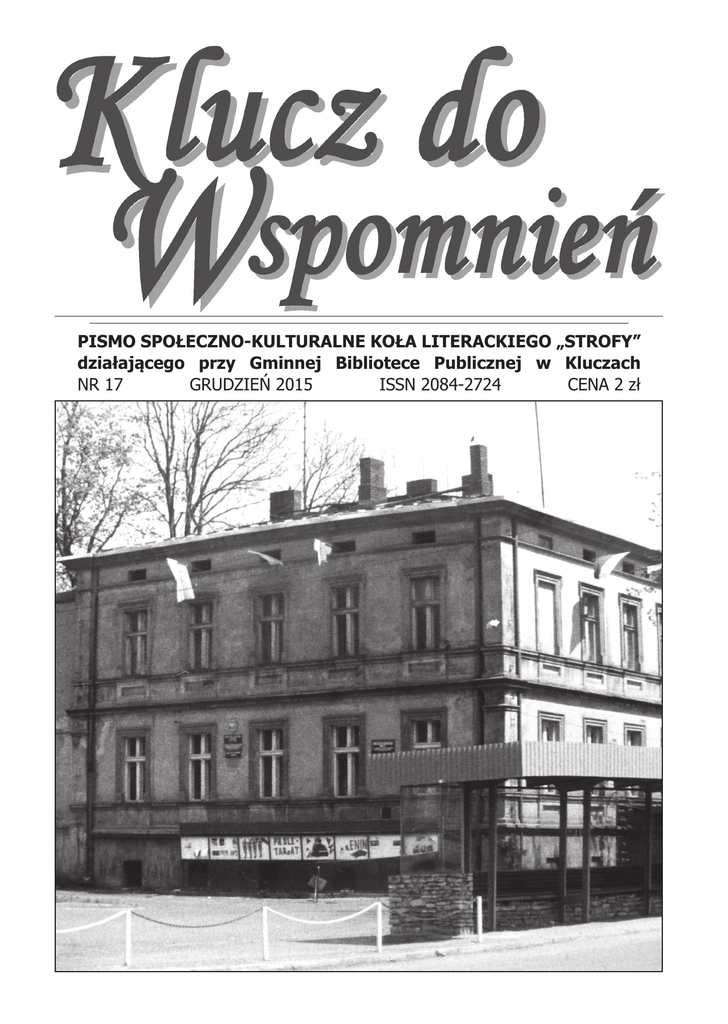 PISMO SPOŁECZNO-KULTURALNE KOŁA LITERACKIEGO „STROFY” działającego przy Gminnej Bibliotece Publicznej w Kluczach NR 17 GRUDZIEŃ 2015 ISSN 2084-2724 CENA 2 zł KLUCZ DO WSPOMNIEŃ 4/2015 W NUMERZE 65 lat Gminy Klucze......................................................................................................................................................... 3 Jedna z niewielu na wsi- cz. II...................................................................................................................................... 9 Wspomnienia Józefa Szreniawy- cz. IV...............................................................................................................17 Kluczewskie rondo.........................................................................................................................................................23 Koło literackie „Strofy”................................................................................................................................................. 24 23.01.2010 r........................................................................................................................................................................26 Echo Klucz 1992...............................................................................................................................................................27 „Należy wyrazić wdzięczność członkom „Komitetów do Czynów Społecznych” i cichym, tym bezimiennym bohaterom i sympatykom spoza komitetów, oraz wszystkim mieszkańcom, którzy nie szczędząc czasu, zdrowia i sił podejmowali ten trud, i realizowali każde rozpoczęte dzieło, aż do jego zakończenia. Tym wszystkim spoza Kwaśniowa, którzy nam bezinteresownie pomagali, wyrazy szczerego szacunku, uznania i wdzięczności- w imieniu całej społeczności Kwaśniowa i własnym, składam najserdeczniejsze podziękowanie”. Władysław Karolczyk Na stronie tytułowej budynek byłego Urzędu Gminy w Kluczach, wybudowany przez Ludwika Mauve ok. 1910 r. na życzenie żony Selmy. Po śmierci Ludwika (1915) Selma mieszkała w nim sama do swej śmierci (22.10.1940). Fotografia pochodzi z albumu Pani Heide Dietel, która w maju 1980 roku odwiedziła Klucze. Pani Heide uwidoczniona jest na fotografii, na tle budynku GS- u w artykule „65 lat Gminy Klucze”. Wydawca: Koło Literackie „Strofy” działające przy Gminnej Bibliotece Publicznej w Kluczach, ul. Rudnicka 2a, tel. 32/6429-283, www.biblioteka-klucze.pl, e-mail: [email protected] ZESPÓŁ REDAKCYJNY: Elżbieta Szatan, Janusz Dziatłowicz, Andrzej Krawczyk. Redakcja oświadcza, że za treść nadesłanych do druku artykułów odpowiedzialność ponosi autor. Skład i łamanie: Klucze Poligrafii • www.kluczepoligrafii.pl 2 65 lat Gminy Klucze OPRAC. DZIATŁOWICZ JANUSZ 65 LAT GMINY KLUCZE – CZ. I. Z chwilą powstania odrodzonego państwa polskiego powiat olkuski wszedł w skład województwa kieleckiego utworzonego w 1919 roku. W okresie międzywojennym następują stopniowe zmiany w podziale administracyjnym. Powiększa się Olkusz o sąsiednie wsie z terenów gminy Rabsztyn i Bolesław. Osada Wolbrom dostaje prawa miejskie w 1930 roku. „W latach 1939- 1945 przez terem powiatu olkuskiego przebiegała granica między Rzeszą Niemiecką a Generalną Gubernią. Zachodnia część powiatu olkuskiego włączona do Rzeszy tworzyła powiat olkuski – Kreis Ilkenau, należący do rejencji katowickiej. Powiat ten tworzyły gminy Bolesław (z Kluczami i Chechłem), Sławków, część gminy Ogrodzieniec i Rabsztyn. Wschodnia zaś część powiatu olkuskiego włączona do Generalnej Guberni należała do powiatu miechowskiego w dystrykcie krakowskim. Były to gminy: Cianowice, Dłużec, Jangrot, Kidów, Kroczyce, Minoga, Pilica, Skała, Sułoszowa i Żarnowiec. W 1945 roku dekretem Prezydenta KRN z dnia 7 lipca powiat olkuski wyłączono z województwa kieleckiego i włączono do krakowskiego. Po wyzwoleniu obserwuje się wzmożone dążenia do utworzenia nowych gmin w Jerzmanowicach, Przegini, Białym Kościele, Imbramowicach i Kluczach. Nowa władza ludowa uznała argumenty niektórych wsi i z dniem 1 stycznia 1950 roku w powiecie olkuskim utworzono dwie nowe gminy: Klucze i Przeginia. Klucze wraz z Chechłem, będące dotąd w granicach administracyjnych gminy Bolesław, stanowiły niejako enklawę i były oddzielone od Bolesławia terenem gminy Rabsztyn. Powierzchnia gminy Bolesław wynosiła wtedy 184 km kwadratowe i należało do niej 18 gromad, a w 1946 roku zamieszkiwało ją 14,5 tyś. mieszkańców. Przeważały tu ziemie piaszczyste, częściowo skaliste, pokryte lasami. Dlatego też większość mieszkańców starała się znaleźć pracę poza rolnictwem i to w nielicznych zakładach jak: Kopalnia Galmanu w Bolesławiu, Fabryki Papieru i Celulozy w Kluczach i Fabryce Drutu i Gwoździ w Laskach.” Przynależność do Gminy Bolesław i ten niekorzystny dla Klucz układ terytorialny już w latach trzydziestych chciano zmienić. W archiwum kieleckim zachowało się pismo starosty powiatu olkuskiego- Czesława Brzostyń- Pismo starosty olkuskiego Czesława Brzostowskiego z 1937 r. skiego z dnia 27 października 1937 roku do Urzędu Wojewódzkiego Wydziału Samorządowego w Kielcach, które jest uzasadnieniem odmownej decyzji w sprawie utworzenia samodzielnej gminy Klucze. Czytamy w nim: „Przedstawiając akta przedmiotowe donoszę, że sprawa utworzenia gminy Klucze poprzez wyłączenie tej miejscowości oraz gromady Chechło z obecnej gminy Bolesław, następnie wyłączenie gromady Golczowice z gminy Rabsztyn oraz gromad Rodaki i Cieślin z gminy Ogrodzieniec- w obecnych warunkach finansowych i budżetowych tych gmin jest wysoce nieaktualne. Gmina Bolesław aczkolwiek największa z gmin wiejskich w pow. Olkuskim ma na ogół bardzo lichą glebę, a duże nasilenie bezrobotnych w związku z unieruchomieniem od szeregu lat kopalń rud