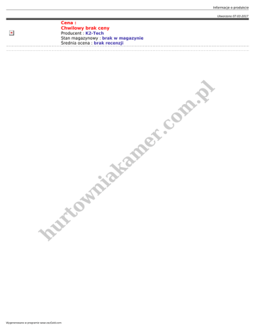 Informacje o produkcie Utworzono 07-03-2017 Cena : Chwilowy brak ceny hu rt ow ni ak am er .c om .p l Producent : K2-Tech Stan magazynowy : brak w magazynie Średnia ocena : brak recenzji Wygenerowano w programie www.oscGold.com