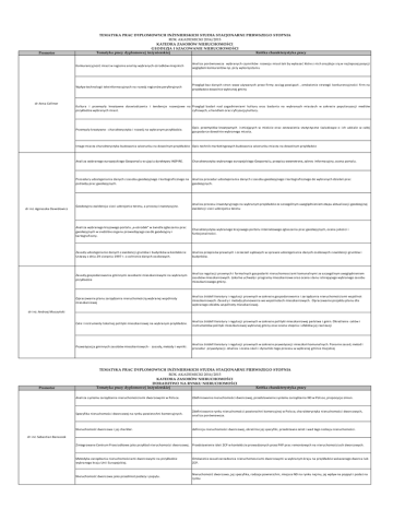 Promotor Tematyka pracy dyplomowej inżynierskiej Krótka