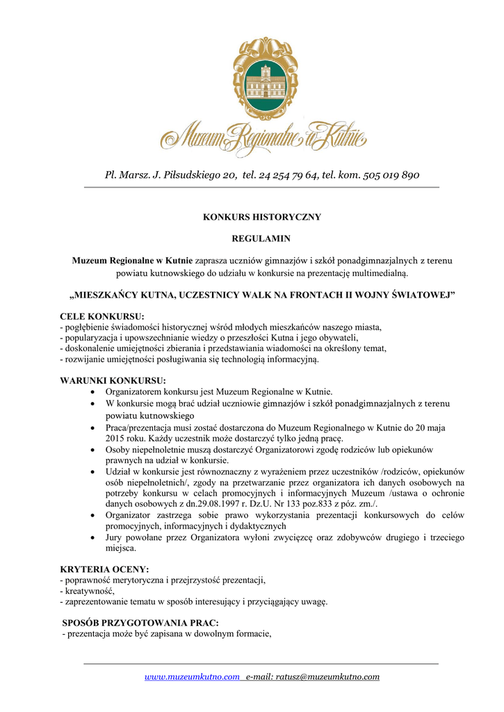 Regulamin konkursu - Muzeum Regionalne w Kutnie