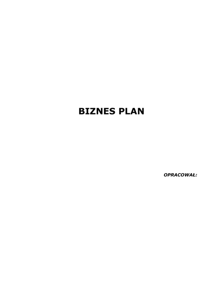 BIZNES PLAN OPRACOWAŁ: I. INFORMACJE O PRZEDSIĘBIORCY 1.1. Wykształcenie .................................................................................................................. .................................................................................................................. .................................................................................................................. .................................................................................................................. .................................................................................................................. .................................................................................................................. 1.2. Kwalifikacje zawodowe .................................................................................................................. .................................................................................................................. .................................................................................................................. .................................................................................................................. .................................................................................................................. .................................................................................................................. 1.3. Posiadane umiejętności przydatne w prowadzeniu działalności gospodarczej .................................................................................................................. .................................................................................................................. .................................................................................................................. .................................................................................................................. .................................................................................................................. .................................................................................................................. 1.4. Zainteresowania .................................................................................................................. .................................................................................................................. .................................................................................................................. .................................................................................................................. .................................................................................................................. .................................................................................................................. B/ 2 z 14 II. OPIS PLANOWANEGO PRZEDSIĘWZIĘCIA 2.1. Zamierzone cele, jakie chce osiągnąć firma .................................................................................................................. .................................................................................................................. .................................................................................................................. .................................................................................................................. 2.2. Forma prawna zakładanego przedsiębiorstwa .................................................................................................................. .................................................................................................................. 2.3. Miejsce lokalizacji firmy .................................................................................................................. .................................................................................................................. 2.4. Forma własności lokalu .................................................................................................................. .................................................................................................................. 2.5. Powierzchnia lokalu .................................................................................................................. .................................................................................................................. 2.6. Przewidywany termin zgłoszenia działalności we właściwym Urzędzie .................................................................................................................. .................................................................................................................. B/ 3 z 14 III. ANALIZA MARKETINGOWA 3.1 ANALIZA RYNKU 3.1.1 Podaj obszary, do których docierać ma produkt / usługa .................................................................................................................. .................................................................................................................. .................................................................................................................. .................................................................................................................. .................................................................................................................. .................................................................................................................. .................................................................................................................. .................................................................................................................. 3.1.2 Podaj liczbę potencjalnych odbiorców na Twój produkt / usługę n