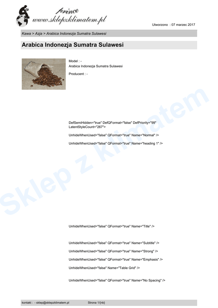 Utworzono : 07 marzec 2017 Kawa > Azja > Arabica Indonezja Sumatra Sulawesi Arabica Indonezja Sumatra Sulawesi Model : Arabica Indonezja Sumatra Sulawesi Producent : - a m DefSemiHidden="true" DefQFormat="false" DefPriority="99" LatentStyleCount="267"> i l k UnhideWhenUsed="false" QFormat="true" Name="Normal" /> UnhideWhenUsed="false" QFormat="true" Name="heading 1" /> S e l k z p UnhideWhenUsed="false" QFormat="true" Name="Title" /> UnhideWhenUsed="false" QFormat="true" Name="Subtitle" /> UnhideWhenUsed="false" QFormat="true" Name="Strong" /> UnhideWhenUsed="false" QFormat="true" Name="Emphasis" /> UnhideWhenUsed="false" Name="Table Grid" /> UnhideWhenUsed="false" QFormat="true" Name="No Spacing" /> kontakt : - [email protected] Strona 1/{nb} m e t Utworzono : 07 marzec 2017 Kawa > Azja > Arabica Indonezja Sumatra Sulawesi Arabica Indonezja Sumatra Sulawesi UnhideWhenUsed="false" Name="Light Shading" /> UnhideWhenUsed="false" Name="Light List" /> UnhideWhenUsed="false" Name="Light Grid" /> UnhideWhenUsed="false" Name="Medium Shading 1" /> m e t UnhideWhenUsed="false" Name="Medium Shading 2" /> UnhideWhenUsed="false" Name="Medium List 1" /> a m UnhideWhenUsed="false" Name="Medium List 2" /> UnhideWhenUsed="false" Name="Medium Grid 1" /> i l k UnhideWhenUsed="false" Name="Medium Grid 2" /> UnhideWhenUsed="false" Name="Medium Grid 3" /> UnhideWhenUsed="false" Name="Dark List" /> z p UnhideWhenUsed="false" Name="Colorful Shading" /> UnhideWhenUsed="false" Name="Colorful List" /> S e l k UnhideWhenUsed="false" Name="Colorful Grid" /> UnhideWhenUsed="false" Name="Light Shading Accent 1" /> UnhideWhenUsed="false" Name="Light List Accent 1" /> UnhideWhenUsed="false" Name="Light Grid Accent 1" /> UnhideWhenUsed="false" Name="Medium Shading 1 Accent 1" /> UnhideWhenUsed="false" Name="Medium Shading 2 Accent 1" /> UnhideWhenUsed="false" Name="Medium List 1 Accent 1" /> UnhideWhenUsed="false" QFormat="true" Name="List Paragraph" /> UnhideWhenUsed="false" QFormat="true" Name="Quote" /> UnhideWhenUsed="false" QFormat="true" Name="Intense Quote" /> UnhideWhenUsed="false" Name="Medium List 2 Accent 1" /> UnhideWhenUsed="false" Name="Medium Grid 1 Accent 1" /> UnhideWhenUsed="false" Name="Medium Grid 2 Accent 1" /> UnhideWhenUsed="false" Name="Medium Grid 3 Accent 1" /> kontakt : - [email protected] Strona 2/{nb} Utworzono : 07 marzec 2017 Kawa > Azja > Arabica Indonezja Sumatra Sulawesi Arabica Indonezja Sumatra Sulawesi UnhideWhenUsed="false" Name="Dark List Accent 1" /> UnhideWhenUsed="false" Name="Colorful Shading Accent 1" /> UnhideWhenUsed="false" Name="Colorful List Accent 1" /> UnhideWhenUsed="false" Name="Colorful Grid Accent 1" /> m e t UnhideWhenUsed="false" Name="Light Shading Accent 2" /> UnhideWhenUsed="false" Name="Light List Accent 2" /> a m UnhideWhenUsed="false" Name="Light Grid Accent 2" /> UnhideWhenUsed="false" Name="Medium Shading 1 Accent 2" /> i l k UnhideWhenUsed="false" Name="Medium Shading 2 Accent 2" /> UnhideWhenUsed="false" Name="Medium List 1 Accent 2" /> UnhideWhenUsed="false" Name="Medium List 2 Accent 2" /> z p UnhideWhenUsed="false" Name="Medium Grid 1 Accent 2" /> UnhideWhenUsed="false" Name="Medium Grid 2 Accent 2" /> S e l k UnhideWhenUsed="false" Name="Medium Grid 3 Accent 2" /> UnhideWhenUsed="false" Name="Dark List Accent 2" /> UnhideWhenUsed="false" Name="Colorful Shading Accent 2" /> UnhideWhenUsed="false" Name="Colorful List Accent 2" /> UnhideWhenUsed="false" Name="Colorful Grid Accent 2" /> UnhideWhenUsed="false" Name="Light Shading Accent 3" /> UnhideWhenUsed="false" Name="Light List Accent 3" /> UnhideWhenUsed="false" Name="Light Grid Accent 3" /> UnhideWhenUsed="false" Name="Medium Shading 1 Accent 3" /> UnhideWhenUsed="false" Name="Medium Shading 2 Accent 3" /> UnhideWhenUsed="false" Name="Medium List 1 Accent 3" /> UnhideWhenUsed="false" Name="Medium List 2 Accent 3" /> UnhideWhenUsed="false" Name="Medium Grid 1 Accent 3" /> UnhideWhenUsed="false" Name="Medium Grid 2 Accent 3" /> UnhideWhenUsed="false" Name="Medium Grid 3 Accent 3" /> kontakt : - [email protected] Strona 3/{nb} Utworzono : 07 marzec 2017 Kawa > Azja > Arabica Indonezja Sumatra Sulawesi Arabica Indonezja Sumatra Sulawesi UnhideWhenUsed="false" Name="Dark List Accent 3" /> UnhideWhenUsed="false" Name="Colorful Shading Accent 3" /> UnhideWhenUsed="false" Name="Colorful List Accent 3" /> m e t UnhideWhenUsed="false" Name="Colorful Grid Accent 3" /> UnhideWhenUsed="false" Name="Light Shading Accent 4" /> UnhideWhenUsed="false" Name="Light List Accent 4" /> a m UnhideWhenUsed="false" Name="Light Grid Accent 4" /> UnhideWhenUsed="false" Name="Medium Shading 1 Accent 4" /> i l k UnhideWhenUsed="false" Name="Medium Shading 2 Accent 4" /> UnhideWhenUsed="false" Name="Medium List 1 Accent 4" /> UnhideWhenUsed="false" Name="Medium List 2 Accent 4" /> z p UnhideWhenUsed="false" Name="Medium Grid 1 Accent 4" /> UnhideWhenUsed="false" Name="Medium Grid 2 Accent 4" /> S e l k UnhideWhenUsed="false" Name="Medium Grid 3 Accent 4" /> UnhideWhenUsed="false" Name="Dark List Accent 4" /> UnhideWhenUsed="false" Name="Colorful Shading Accent 4" /> UnhideWhenUsed="false" Name="Colorful List Accent 4" /> UnhideWhenUsed="false" Name="Colorful Grid Accent 4" /> UnhideWhenUsed="false" Name="Light Shading Accent 5" /> UnhideWhenUsed="false" Name="Light List Accent 5" /> UnhideWhenUsed="false" Name="Light Grid Accent 5" /> UnhideWhenUsed="false" Name="Medium Shading 1 Accent 5" /> UnhideWhenUsed="false" Name="Medium Shading 2 Accent 5" /> UnhideWhenUsed="false" Name="Medium List 1 Accent 5" /> UnhideWhenUsed="false" Name="Medium List 2 Accent 5" /> UnhideWhenUsed="false" Name="Medium Grid 1 Accent 5" /> UnhideWhenUsed="false" Name="Medium Grid 2 Accent 5" /> kontakt : - [email protected] Strona 4/{nb} Utworzono : 07 marzec 2017 Kawa > Azja > Arabica Indonezja Sumatra Sulawesi Arabica Indonezja Sumatra Sulawesi UnhideWhenUsed="false" Name="Medium Grid 3 Accent 5" /> UnhideWhenUsed="false" Name="Dark List Accent 5" /> 
