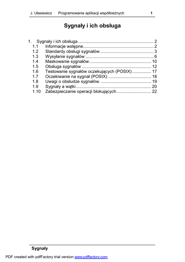 Oczekiwanie na sygnał (POSIX) .................................... 18