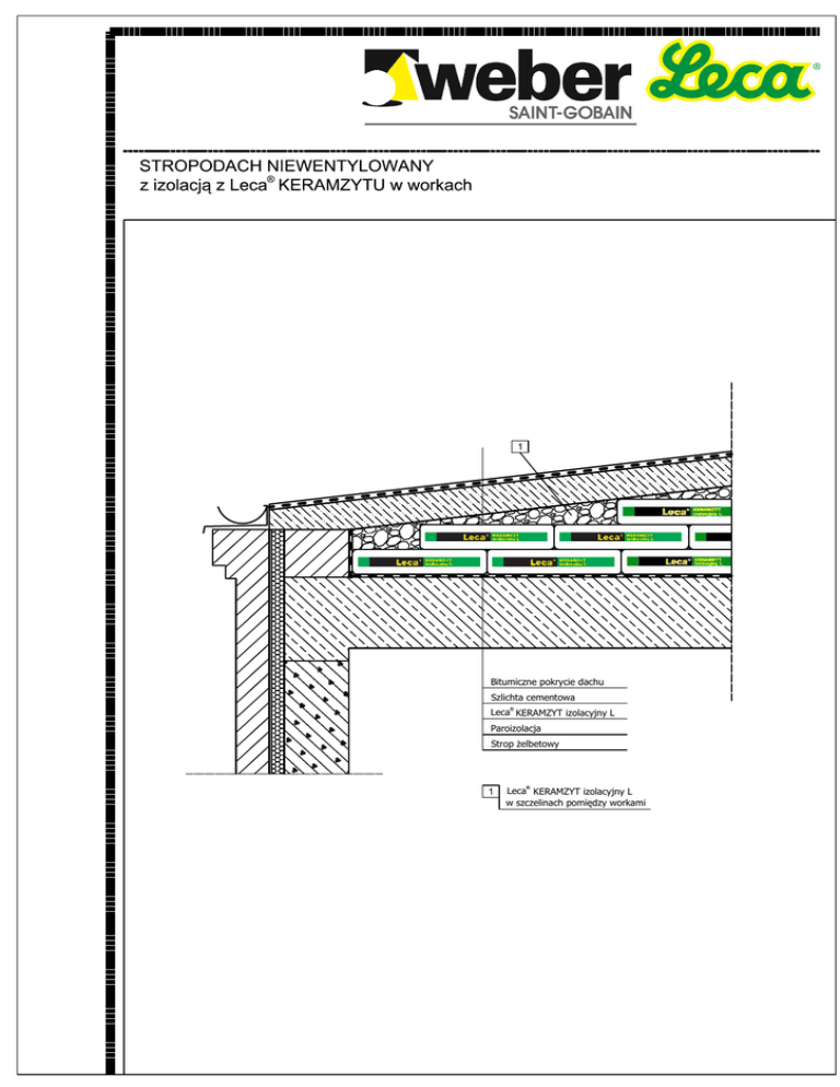 1 Bitumiczne pokrycie dachu Szlichta cementowa Leca KERAMZYT izolacyjny L Paroizolacja 1 Leca KERAMZYT izolacyjny L