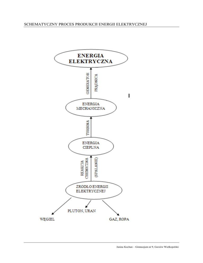 SCHEMATYCZNY PROCES PRODUKCJI ENERGII ELEKTRYCZNEJ Janina Kochan – Gimnazjum nr 9, Gorzów Wielkopolski