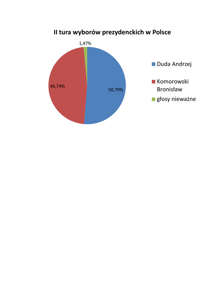 II tura wyborów prezydenckich w Polsce 1,47% Duda Andrzej 46,74% 50,79% Komorowski Bronisław głosy nieważne