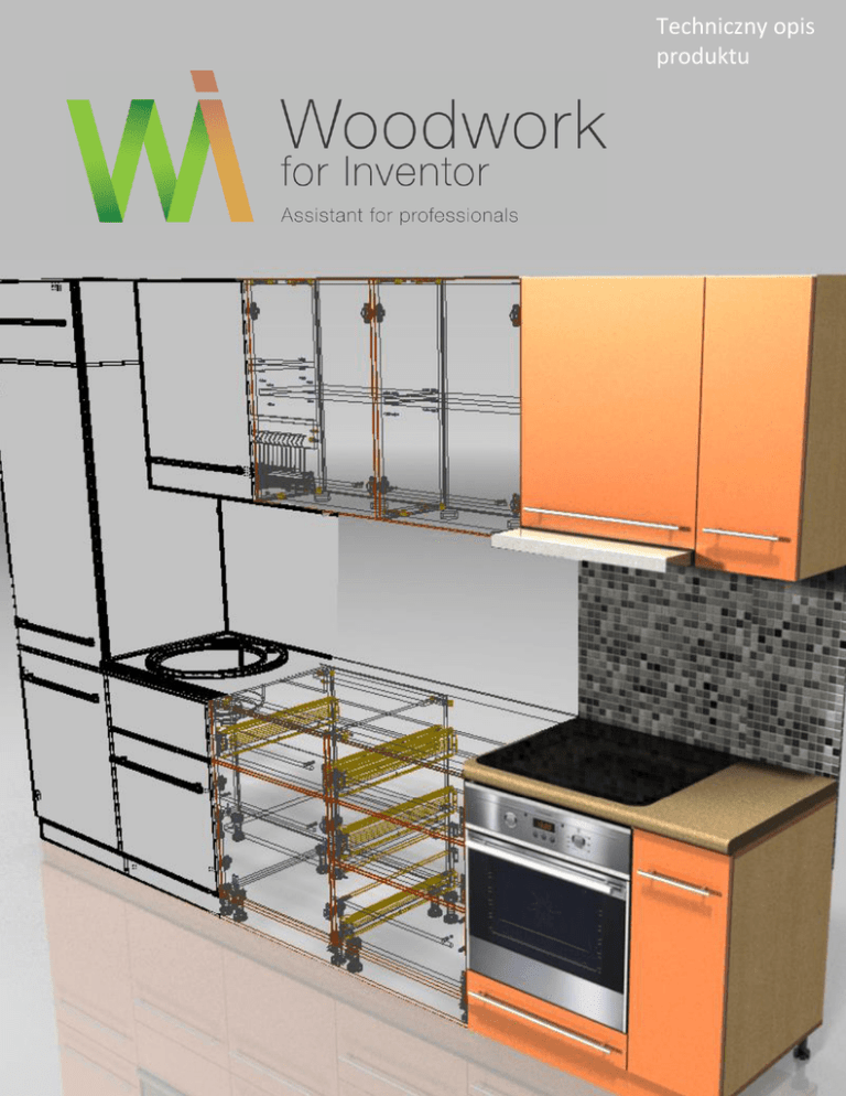 Techniczny opis produktu Techniczny opis produktu Techniczny opis produktu Treść Wykorzystanie silnika Autodesk Inventor ............................................................................................................................................ 3 Przypisanie materiałów ........................................................................................................................................................................ 4 Grupy materiałów ................................................................................................................................................................................ 4 Grupy oklein obrzeży ............................................................................................................................................................................ 5 Kalkulacja wielkości części i półsurowca .............................................................................................................................................. 5 Typy części ............................................................................................................................................................................................ 6 Klejone części kompozytowe ................................................................................................................................................................ 6 Biblioteka elementów meblarskich w W4I ........................................................................................................................................... 6 Wstawianie elementów łącznych i tworzenie automatycznych otworów ........................................................................................... 7 Wykorzystywanie prototypów i kompiowanie złożeń.......................................................................................................................... 7 Generowanie BOM ............................................................................................................................................................................... 8 Eksportowanie do oprogramowania optymalizującego wycinanie ...................................................................................................... 8 Obróbka CNC ........................................................................................................................................................................................ 9 Techniczny opis produktu Woodwork for Inventor (W4I) zwiększa funkcjonalność Autodesk Inventor czyniąc go dedykowanym systemem dla przemysłu drzewnego (meblarstwo, drzwi, schody itd.). W4I automatyzuje i skraca czas do 50% jaki projektant potrzebuje na przygotowanie dokumentacji technicznej. Wykorzystanie silnika Autodesk Inventor W4I zachowuje wszystkie funkcjonalności Autodesk Inventor i dodaje nowe narzędzia oraz metody projektowania. W4I nie ogranicza żadnych funkcji Autodesk Inventor. Każdą część mebli można zaprojektować wykorzystując Inventor’a i w łatwy sposób przygotować do procesu produkcyjnego wykorzystując W4I. Projektowane modele mogą być inteligentne w oparciu o części i złożenia przy wykorzystaniu narzędzi iPart i iAssembly. Każdy model można powiązać z tabelą parametrów oraz z innymi funkcjami automatyzującymi pracę. www.woodworkforinventor.com 3 Techniczny opis produktu Przypisanie materiałów W Autodesk Inventor można przypisać materiał i teksture do danej części. Metodykę jaką proponuje Inventor trudno zastosować przy tworzeniu mebli, gdyż większość elementów to części kompozytowe. Przykładowo część składa się z płyty laminowanej i okleiny obrzeża. Te elementy są tak naprawdę złożeniami, które mogą zostać zamodelowane w Autodesk Inventor jako złożenia lecz czas projektowania bardzo się wydłuża. W4I ma swoją unikatową metodę pracy z materiałami. Grupy materiałów Woodwork for Inventor wykorzystuje koncepcje grup materiałów do manipulowania nimi w części. Ideą tej funkcjonalności jest możliwość sklasyfikowania wszystkich części do grup względem ich funkcji w projekcie (np. grupa materiałów frontowych, grupa korpusu części). Projektant na początku swojej pracy potrzebuje tylko wiedzieć jak części będą pogrupowane względem ich przeznaczenia (korpus, front itd.). Projektant nie musi wiedzieć jaki dokładnie materiał zostanie użyty. Dopiero na etapie produkcji musi zdecydować o wykorzystywanym materiale do danego elmentu. Dla przykładu części w grupie frontowych materiałów zostaną utworzone z Oak Cantor R4128, korpus zostanie wykonany z Bantu R3018W. Jeżeli projektant chce produkować ten sam mebel z innego materiału (np. biały front zamiast brązowego) nie musi zmieniać całego modelu. Projektant generuje nową specyfikację przydzielenia nowego materiału do tej samej grupy materiałów. www.woodworkforinventor.com 4 Techniczny opis produktu Grupy oklein obrzeży Kalkulacja wielkości części i półsurowca Metoda wykorzystywana do dodawania okleiny na obrzeżu jest taka sama jak praca z materiałami. Na etapie projektowania przypisujemy grupom okleinowania obrzeży określoną grubość. W rzeczywistości materiał nie jest istotny na etapie projektowania. Jedyną czynnością jaką należy wykonać to pokazanie krawędzi, które zostaną okleinowane. Grubość okleinowania obrzeży zostanie uwzględniona przy wygenerowaniu BOM (lista części). W4I pozwala na ustawienie kierunku tekstury oraz technologii wypełniania wcięć. W zależności od kierunku tekstury, W4I automatycznie oblicza minimalny rozmiar półsurowca potrzebnego do wyprodukowania części. Podczas tworzenia kalkulacji BOM (listy części) automatycznie zostają uwzględnione okleiny obrzeży wraz z grubością, kierunkiem tekstury oraz z wypełnieniem wcięć. Jednym kliknięciem można zmienić grubość okleinow