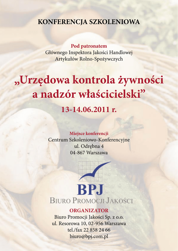 KONFERENCJA SZKOLENIOWA Pod patronatem Głównego Inspektora Jakości Handlowej Artykułów Rolno-Spożywczych „Urzędowa kontrola żywności a nadzór właścicielski” 13-14.06.2011 r. Miejsce konferencji Centrum Szkoleniowo-Konferencyjne ul. Odrębna 4 04-867 Warszawa ORGANIZATOR Biuro Promocji Jakości Sp. z o.o. ul. Resorowa 10, 02-956 Warszawa tel./fax 22 858 24 66 [email protected] Szanowni Państwo, „Urzędowa kontrola żywności a nadzór właścicielski” to pierwsza konferencja z cyklu poświęconych bezpieczeństwu żywności, przeznaczona dla przedstawicieli producentów, dystrybutorów oraz nadzoru nad żywnością. Bezpieczeństwo żywności w UE jest gwarantowane przez prawo, jednakże zmiana formy prawnej (pierwotnie dyrektywy, obecnie rozporządzenia) spowodowała konieczność uogólnienia prawa, przez co niektóre przepisy nie pokazują dokładnie, czego oczekuje się zarówno od tych, którzy mają go przestrzegać, jak i od stojących na straży jego przestrzegania. Prawo definiuje warunki potrzebne przy produkcji i dystrybucji żywności. Zostały one określone na poziomie minimalnym, gwarantującym bezpieczeństwo produktu dla konsumenta. Prawo określa też wymagania mikrobiologiczne, dla żywności stwarzającej większe niż przeciętne zagrożenie, aby zminimalizować możliwość wystąpienia zbiorowych zatruć pokarmowych o podłożu mikrobiologicznym. Producent, w celu zapewnienia żywności odpowiadającej tym wymaganiom, musi na poszczególnych etapach produkcji panować nad stanem mikrobiologicznym (żywności i jej otoczenia w czasie produkcji), aby mieć możliwość zareagowania w taki sposób, by poziom wskazany przez prawo w produkcie gotowym nie został przekroczony. Po przekroczeniu poziomu prawnie wymaganego żywność staje się odpadem. Podobne tematy i rozważania będą udziałem uczestników konferencji. W jej toku uczestnicy będą mieć możliwość zadania pytań wykładowcom, którzy aktywnie brali udział w dostosowaniu polskiego prawa do prawa żywnościowego UE. Zostaną wyjaśnione przepisy prawa i wątpliwości w jego stosowaniu, a przytoczenie najczęściej popełnianych niedociągnięć sprawi, że dla uczestników konferencji zrozumienie zasad prawa stanie się znacznie łatwiejsze i prostsze. Serdecznie zapraszam! Tadeusz Wojciechowski Prezes zarządu Biuro Promocji Jakości Sp. z o.o. O wykładowcach: dr Adam Jarecki – Główny Inspektorat Weterynarii – naczelnik wydziału ds. integracji europejskiej 1999-2003; Ministerstwo Rolnictwa i Rozwoju Wsi 2003-2006. Od 2007 r. audytor jakości i konsultant ds. weterynaryjnych największej w Polsce firmy handlu detalicznego żywnością. dr Józef Grobelny – wojewódzki inspektor ds. bezpieczeństwa żywności, pasz oraz ubocznych produktów zwierzęcych, uczestnik prac dostosowujących prawo polskie do unijnego. dr Zdzisław Król – wojewódzki inspektor ds. bezpieczeństwa żywności, pasz oraz ubocznych produktów zwierzęcych, uczestnik prac dostosowujących prawo polskie do unijnego, ekspert w dziedzinie wymagań dla rzeźni, przetwórstwa mięsa oraz pozyskiwania i przetwórstwa mleka. prof. dr hab. Stanisław Kowalczyk – profesor ekonomii SGH, Główny Inspektor Jakości Handlowej Artykułów Rolno-Spożywczych. prof. dr hab. Krzysztof Kwiatek – od 2002 roku kierownik Zakładu Higieny Środków Żywienia Zwierząt Państwowego Instytutu Weterynaryjnego. Zajmuje się w coraz szerszym zakresie zagadnieniami mikrobiologii pasz, wykrywaniem obecności przetworzonego białka zwierzęcego, wykrywaniem i ilościowym oznaczaniem GMO w paszach. dr n. prawnych Michał Rudy – zajmuje się tematyką z zakresu prawa sanitarnego, prawa weterynaryjnego oraz wspólnotowego prawa europejskiego. Był dyrektorem Biura Prawnego Głównego Inspektoratu Weterynarii oraz pełnił funkcję zastępcy dyrektora generalnego tego urzędu. „Urzędowa kontrola żywności a nadzór właścicielski” 13-14.06.2011 r. Centrum Szkoleniowo-Konferencyjne, ul. Odrębna 4, 04-867 Warszawa PROGRAM KONFERENCJI SZKOLENIOWEJ DZIEŃ 1 (13 czerwca) 10:00-11:00 Rejestracja i zakwaterowanie uczestników konferencji 11:00-11:45 Obowiązki producentów i nadzoru wg prawa żywnościowego dr Adam Jarecki, konsultant weterynaryjny 11:45-12:30 Metody i techniki prowadzenia urzędowej kontroli żywności dr Zdzisław Król, Wojewódzki Inspektorat Weterynaryjny 12:30-13:15 Rejestracja i zatwierdzanie zakładów żywnościowych dr Józef Grobelny, Wojewódzki Inspektorat Weterynaryjny 13:15-14:30 Przerwa na obiad 14:30-15:15 Audyt wewnętrzny i zewnętrzny - problemy i bariery w realizacji nadzoru właścicielskiego dr Adam Jarecki, konsultant weterynaryjny 15:15-16:45 Kryteria mikrobiologiczne w żywności. Nowe podejście do bezpieczeństwa żywności w kontroli wewnętrznej i urzędowej prof. Krzysztof Kwiatek, Państwowy Instytut Weterynaryjny 16:45-17:30 Identyfikowalność – podstawa bezpieczeństwa żywności dr Zdzisław Król, Wojewódzki Inspektorat Weterynaryjny 17:30-18:15 Odstępstwa od wymagań dla zakładów na rynek krajowy i działalności typu MOL dr Józef Grobelny, Wojewódzki Inspektorat Weterynaryjny 18:15-19:00 Prezentacje firm 19:00-20:00 Dyskusja 20:00-22:00 Uroczysta kolacja DZIEŃ 2 (14 czerwca) 8:00-9:00 Śniadanie 9:00-10:00 Egzekwowanie prawa żywnościowego dr Michał Rudy, Kancelaria Prawna Result K.Witkowski&Spółka - Spółka Komandytowa 10:00-11:30 Nieprawidłowości w produkcji żywności na podstawie kontroli Inspekcji Jakości Handlowej Artykułów Rolno-Spożywczych prof. Stanisław Kowalczyk, Główny Inspektor Jakości Handlowej Artykułów Rolno-Spożywczych 11:30-13:00 Dyskusja - podsumowanie konferencji 13:00-15:00 Przerwa na obiad ZGŁOSZENIE UDZIAŁU I. Dane uczestnika 1. Pełna nazwa firmy: 2. Adres firmy: 3. Telefon: 4. NIP: 5. Osoby uczestniczące w konferencji: A/ imię i nazwisko: B/ imię i nazwisko: e-mail: Fax stanowisko: stanowisko: C/ imię i nazwisko