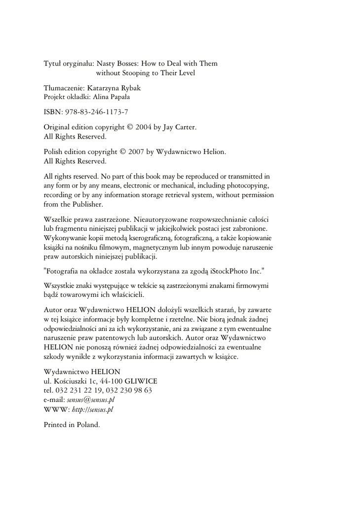 Tytuł oryginału: Nasty Bosses: How to Deal with Them without
