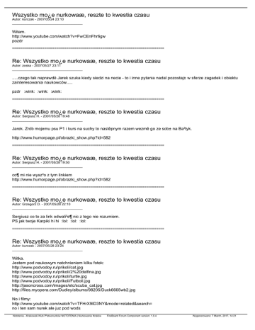Wszystko mo¿e nurkowaæ, reszte to kwestia czasu Autor: kurczak - 2007/05/24 23:10 _____________________________________ Witam. http://www.youtube.com/watch?v=FwCEnFhr6gw pozdr ============================================================================ Re: Wszystko mo¿e nurkowaæ, reszte to kwestia czasu Autor: zoska - 2007/05/27 23:11 _____________________________________ .....czego tak naprawdê Jarek szuka kiedy siedzi na necie - to i inne pytania nadal pozostaj± w sferze zagadek i obiektu zainteresowania naukowców..... pzdr :wink: :wink: :wink: ============================================================================ Re: Wszystko mo¿e nurkowaæ, reszte to kwestia czasu Autor: Sergiusz H. - 2007/05/28 19:48 _____________________________________ Jarek. Zrób mojemu psu P1 i kurs na suchy to nastêpnym razem wezmê go ze sob± na Ba³tyk. http://www.humorpage.pl/obrazki_show.php?id=582 ============================================================================ Re: Wszystko mo¿e nurkowaæ, reszte to kwestia czasu Autor: Sergiusz H. - 2007/05/28 19:50 _____________________________________ co¶ mi nie wysz³o z tym linkiem http://www.humorpage.pl/obrazki_show.php?id=582 ============================================================================ Re: Wszystko mo¿e nurkowaæ, reszte to kwestia czasu Autor: Grzegorz D. - 2007/05/28 22:10 _____________________________________ Sergiusz co to za link odwali³e¶ nic z tego nie rozumiem. PS jak twoje Karpiki hi hi :lol: :lol: :lol: ============================================================================ Re: Wszystko mo¿e nurkowaæ, reszte to kwestia czasu Autor: kurczak - 2007/05/28 23:24 _____________________________________ Witka. Jestem pod naukowym natchnieniem kilku fotek: http://www.podvodoy.ru/prikoli/cat.jpg http://www.podvodoy.ru/prikoli/2%20delfina.jpg http://www.podvodoy.ru/prikoli/turtle.jpg http://www.podvodoy.ru/prikoli/Futboll.jpg http://jasoncross.com/images/etc/scuba_cat.jpg http://files.myopera.com/Dudley/albums/98205/Duck6665wb2.jpg No i filmy: http://www.youtube.com/watch?v=TFHrX9ID3NY&mode=related&search= no i ten sam nurek ale juz pod wod± Nototenia - Krakowski Klub P³etwonurków NOTOTENIA | Nurkowanie Kraków FireBoard Forum Component version: 1.0.4 Wygenerowano: 7 March, 2017, 14:21 http://www.youtube.com/watch?v=23opLm7Qr1M&mode=related&search= pozdr ;-) Jarek Kur kurczak ============================================================================ Kaczka ... Autor: tstanczyk - 2007/06/30 18:06 _____________________________________ Z t± kaczka chyba przesadzi³e¶ .... :oops: niepoprawne politycznie ! Komisja inkwizycyjna zosta³a powo³ana strze¿ siê :wink: ============================================================================ vintage prom dresses Autor: Harold Hayden - 2012/07/17 03:29 _____________________________________ truly feel plus size wedding dress plus size wedding dress plus sized mother of the bride dresses plus sized mother of the bride dresses . plus size short dresses plus size short dresses Some weddings are prepared within the beach front aspect or on the boat, a bridetobe would not have on a gown using a path that'll be dragging alone throughout the sand, they will desire a beach front marriage ceremony gown great for his or her wonderful seaside wedding ceremony. vintage style cocktail dress vintage style cocktail dress Most ladies would choose for the uncomplicated sheath gown made from mild materials, large size evening dresses large size evening dresses but almost certainly the very best option is usually to choose a seaside marriage ceremony gown by having an empire slice http://www.beedresses.net/images/thumbnails/Evening-Dresses/Evening-Dresses-BW10503.jpg cheap 2012 prom dresses cheap 2012 prom dresses . Recently, acquiring married in the couple's favourite area is apparently the craze, even though receiving married during the park, yard or seaside may well look much less formal, it really is even now as significant as classic church wedding ceremony. vintage style dresses vintage style dresses These a lot less formal wedding ceremony ceremonies are the truth is more cost-effective to carry than regular ============================================================================ Nototenia - Krakowski Klub P³etwonurków NOTOTENIA | Nurkowanie Kraków FireBoard Forum Component version: 1.0.4 Wygenerowano: 7 March, 2017, 14:21