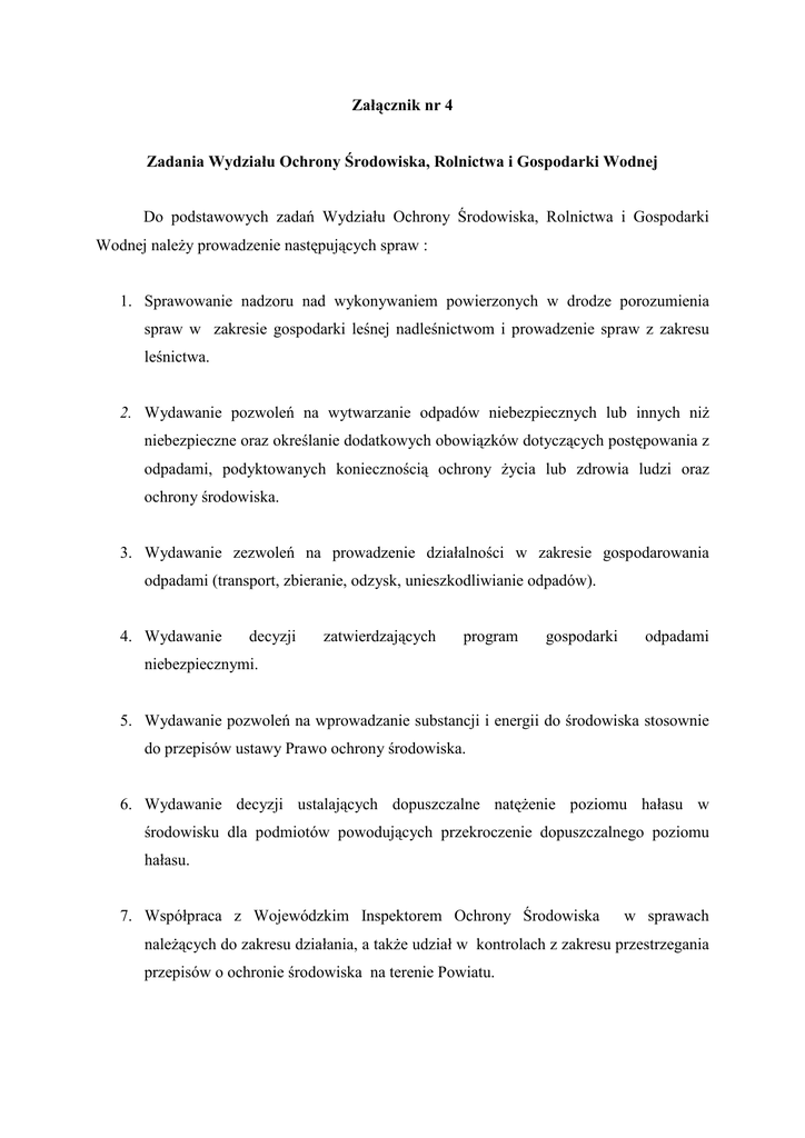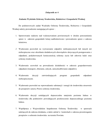 Załącznik nr 4 Zadania Wydziału Ochrony Środowiska, Rolnictwa i