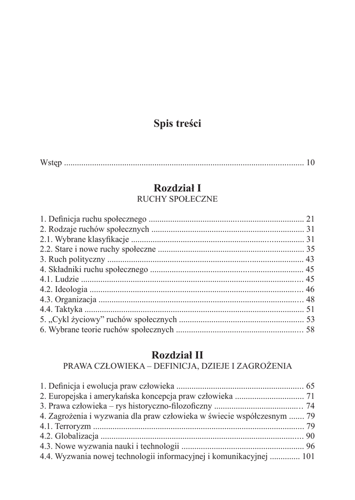 Spis treści Wstęp ............................................................................................................... 10 Rozdział I RUCHY SPOŁECZNE 1. Definicja ruchu społecznego ........................................................................ 21 2. Rodzaje ruchów społecznych ....................................................................... 31 2.1. Wybrane klasyfikacje ................................................................................ 31 2.2. Stare i nowe ruchy społeczne .................................................................... 35 3. Ruch polityczny ........................................................................................... 43 4. Składniki ruchu społecznego ....................................................................... 45 4.1. Ludzie ....................................................................................................... 45 4.2. Ideologia ................................................................................................... 46 4.3. Organizacja ............................................................................................... 48 4.4. Taktyka ...................................................................................................... 51 5. „Cykl życiowy” ruchów społecznych .......................................................... 53 6. Wybrane teorie ruchów społecznych ........................................................... 58 Rozdział II PRAWA CZŁOWIEKA – DEFINICJA, DZIEJE I ZAGROŻENIA 1. Definicja i ewolucja praw człowieka ........................................................... 65 2. Europejska i amerykańska koncepcja praw człowieka ................................ 71 3. Prawa człowieka – rys historyczno-filozoficzny ......................................... 74 4. Zagrożenia i wyzwania dla praw człowieka w świecie współczesnym ....... 79 4.1. Terroryzm .................................................................................................. 79 4.2. Globalizacja .............................................................................................. 90 4.3. Nowe wyzwania nauki i technologii ......................................................... 96 4.4. Wyzwania nowej technologii informacyjnej i komunikacyjnej .............. 101 SPIS TREŚCI 4______________________________________________________________________________ Rozdział III RZĄDOWE I POZARZĄDOWE SYSTEMY OCHRONY PRAW CZŁOWIEKA 1. Organizacja Narodów Zjednoczonych ....................................................... 114 1.1 System ochrony praw człowieka .............................................................. 114 1.1.1. Podstawowe dokumenty dotyczące praw człowieka wypracowane w ramach ONZ ..................................................................................... 115 1.1.1.1. Powszechna Deklaracja Praw Człowieka ......................................... 115 1.1.1.2. Międzynarodowe Pakty Praw Człowieka ......................................... 117 1.1.1.3. Konwencja w sprawie Zakazu Stosowania Tortur oraz Innego Nieludzkiego lub Poniżającego Traktowania albo Karania (1984) .... 119 1.1.1.4. Konwencja w sprawie Likwidacji Wszelkich Form Dyskryminacji Rasowej (1965) ........................................................ 119 1.1.1.5. Konwencja w sprawie Likwidacji Wszelkich Form Dyskryminacji Kobiet (1975) .................................................................................... 120 1.1.1.6. Konwencja Praw Dziecka (1989) wraz z dwoma protokołami fakultatywnymi ................................................................................. 120 1.1.1.7. Konwencja dotycząca Statusu Uchodźców (1951) oraz uzupełniający ją Protokół dotyczący Ochrony Uchodźców (1967) ............................................................................................... 121 1.1.1.8. Międzynarodowa Konwencja o Ochronie Wszystkich Osób przed Wymuszonym Zaginięciem z 2006 roku ................................... 122 1.1.1.9. Konwencja o Prawach Osób Niepełnosprawnych z 2006 roku ......... 122 1.1.1.10. Międzynarodowa Konwencja o Ochronie Praw Wszystkich Pracowników Migrantów i Członków Ich Rodzin z 1990 roku ....... 122 1.1.2. Kompetencje i działalność głównych organów Narodów Zjednoczonych odpowiedzialnych za ochronę praw człowieka ............ 123 1.1.3. Mechanizmy kontrolne przestrzegania praw człowieka ...................... 131 1.1.4. Próba oceny systemu ochrony praw człowieka w Organizacji Narodów Zjednoczonych ..................................................................... 134 2. Rada Europy .............................................................................................. 137 2.1. Podstawowe dokumenty dotyczące praw człowieka wypracowane w ramach organizacji .............................................................................. 138 2.1.1. Europejska Konwencja o Ochronie Praw Człowieka i Podstawowych Wolności, uchwalona w 1950 roku, oraz protokoły dodatkowe ........... 138 2.1.2. Europejska Konwencja o Zapobieganiu Torturom oraz Nieludzkiemu lub Poniżającemu Traktowaniu lub Karaniu z 1987 roku .................... 140 2.1.3. Europejska Karta Społeczna z 1961 roku ............................................ 140 2.1.4. Inne znaczące dokumenty wypracowane przez organizację ................ 141 2.1.4.1. Konwencja w sprawie Zwalczania Handlu Ludźmi ............................. 142 SPIS TREŚCI 5 ______________________________________________________________________________ 2.1.4.2. Konwencja Ramowa o Ochronie Mniejszości Narodowych ............... 142 2.1.4.3. Konwencja o Prawach Człowieka i Biomedycynie ........................... 143 2.1.4.4. Konwencja o Ochronie Osób w Związku z Automatycznym Przetwarzaniem Danych Osobowych .................................................. 143 2.1.4.5. Europejska Konwencja o Wykonywaniu Praw Dzieci ........