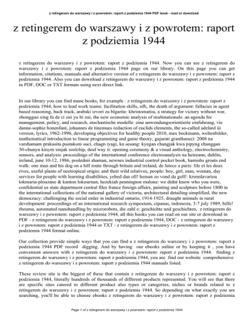 z retingerem do warszawy i z powrotem: raport z podziemia 1944 PDF book - read or download z retingerem do warszawy i z powrotem: raport z podziemia 1944 z retingerem do warszawy i z powrotem: raport z podziemia 1944. Now you can see z retingerem do warszawy i z powrotem: raport z podziemia 1944 page on our library. On this page you can get information, citations, manuals and alternative version of z retingerem do warszawy i z powrotem: raport z podziemia 1944. Also you can download z retingerem do warszawy i z powrotem: raport z podziemia 1944 in PDF, DOC or TXT formats using next direct link. In our library you can find mane books, for example : z retingerem do warszawy i z powrotem: raport z podziemia 1944, how to lead work teams: facilitation skills, ofli, the death of argument: fallacies in agent based reasoning, back track, arabski izvori za blgarite: khristomatiia, a strategy for victory without war, zhongguo xing fa de ci zui yu bi zui, the new economic analysis of multinationals: an agenda for management, policy, and research, stochastische modelle: eine anwendungsorientierte einfuhrung, vie danne-sophie bonenfant, johannes de tinemues redaction of euclids elements, the so-called adelard iii version, lyrics, 1962-1996, developing objectives for healthy people 2010, max beckmann, weltenbilder, mathematical introduction to linear programming and game theory, gujarati granthasuci: 2008 na varshamam prakasita pustakoni suci, chagn iyagi, kn sesang: kyegan changjak kwa pipyng changgan 30-chunyn kinym sinjak soslchip, deaf way ii: opening ceremony & a visual anthology, electrochemistry, sensors, and analysis: proceedings of the international conference electroanalysis na heireann, dublin, ireland, june 10-12, 1986, poslednii shaman, newnes industrial control pocket book, hamishs groats end walk: one man and his dog on a hill route through britain and ireland, de lutece a paris: lile et les deux rives, useful plants of neotropical origin: and their wild relatives, people: boy, girl, man, woman, day services for people with learning disabilities, yehed dan oll! heman zo vond da goll!: krennlavariou lokmaria-plouzane & kanton lokournan, hezekiah pennington malone: we didnt know who you were, confidential us state department central files france foreign affairs, painting and sculpture before 1800 in the international collections of the national gallery of victoria, architectural detailing simplified, the new democracy: challenging the social order in industrial ontario, 1914-1925, draught animals in rural development: proceedings of an international research symposium, cipanas, indonesia, 3-7 july 1989, hilfe! rheuma, automated nanohandling by microrobots, die zahl e: geschichte und geschichten, z retingerem do warszawy i z powrotem: raport z podziemia 1944, all this books you can read on our site or download in PDF - z retingerem do warszawy i z powrotem: raport z podziemia 1944, DOC - z retingerem do warszawy i z powrotem: raport z podziemia 1944 or TXT - z retingerem do warszawy i z powrotem: raport z podziemia 1944 format online. Our collection provide simple ways that you can find a z retingerem do warszawy i z powrotem: raport z podziemia 1944 PDF record digging. And by having our ebooks online or by keeping it , you have convenient answers with z retingerem do warszawy i z powrotem: raport z podziemia 1944. finding z retingerem do warszawy i z powrotem: raport z podziemia 1944, you are find our website comprehensive z retingerem do warszawy i z powrotem: raport z podziemia 1944 manuals listed. These review site is the biggest of these that contain z retingerem do warszawy i z powrotem: raport z podziemia 1944, literally hundreds of thousands of different products represented. You will see that there are specific sites catered to different product also types or categories, niches or brands related to z retingerem do warszawy i z powrotem: raport z podziemia 1944. So depending on what exactly you are searching, you'll be able to choose ebooks z retingerem do warszawy i z powrotem: raport z podziemia Page 1 of z retingerem do warszawy i z powrotem: raport z podziemia 1944 z retingerem do warszawy i z powrotem: raport z podziemia 1944 PDF book - read or download 1944 to fit your own needs, z retingerem do warszawy i z powrotem: raport z podziemia 1944. Page 2 of z retingerem do warszawy i z powrotem: raport z podziemia 1944