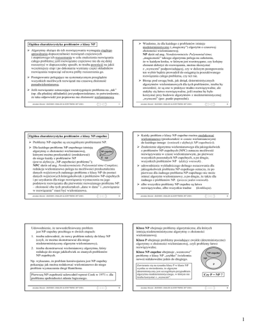 Ogólna charakterystyka problemów z klasy NP Algorytmy słu ące do