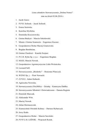 Lista członków Stowarzyszenia „Dolina Noteci” stan na dzień 03.06