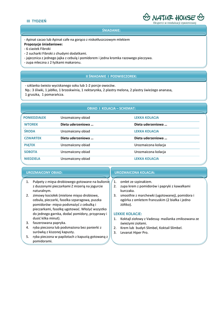 iii tydzień lekkie kolacje